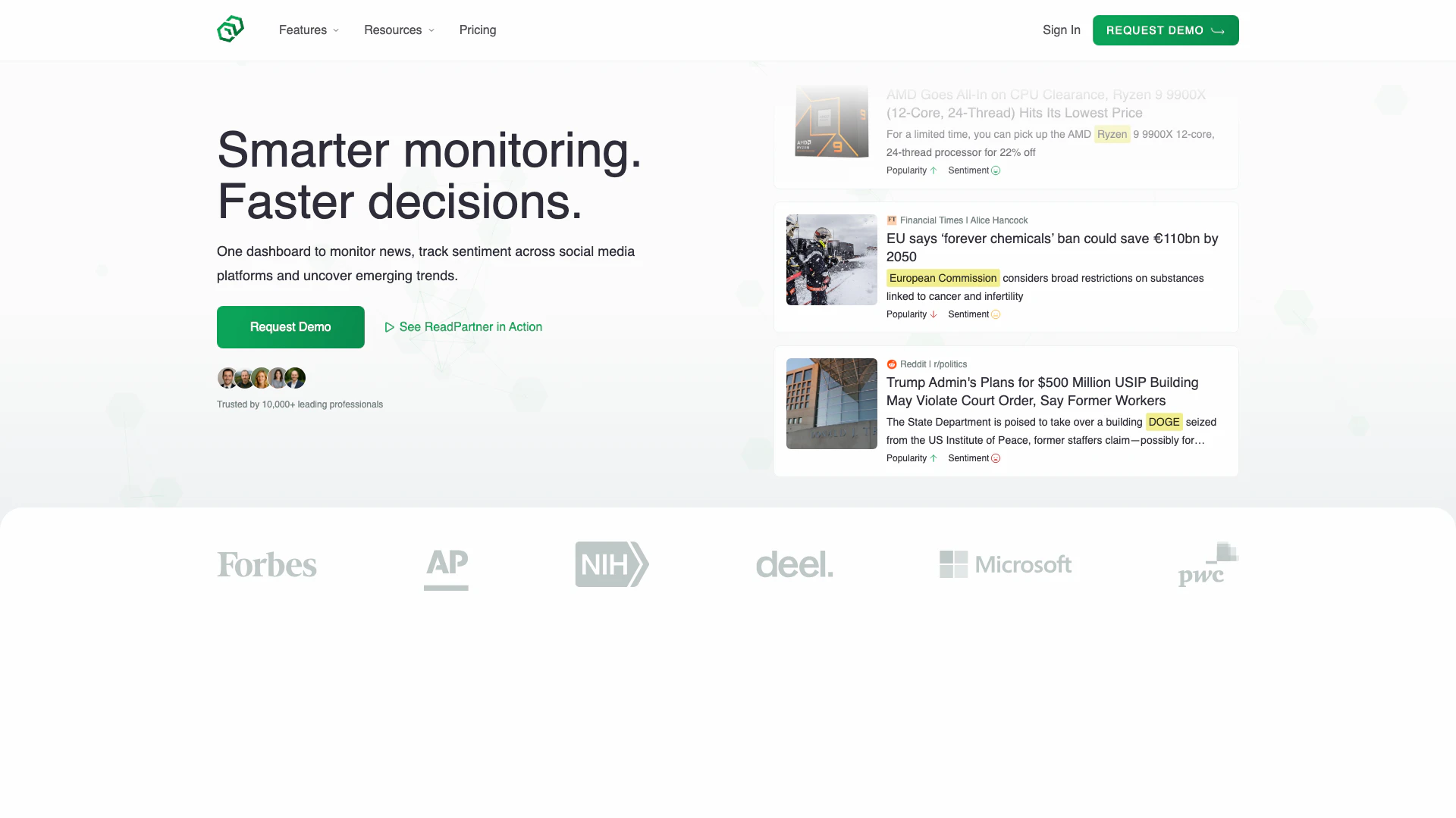 - Monitoreo de Medios Integral: ReadPartner proporciona amplias capacidades de monitoreo de medios en medios de comunicación tradicionales y plataformas de redes sociales, permitiendo a las empresas rastrear menciones y sentimientos de manera efectiva.