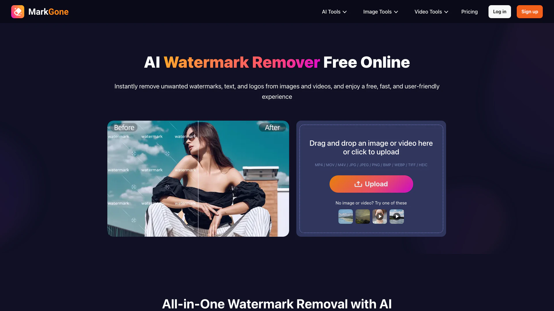 Elimina fácilmente marcas de agua de imágenes y videos con IA.