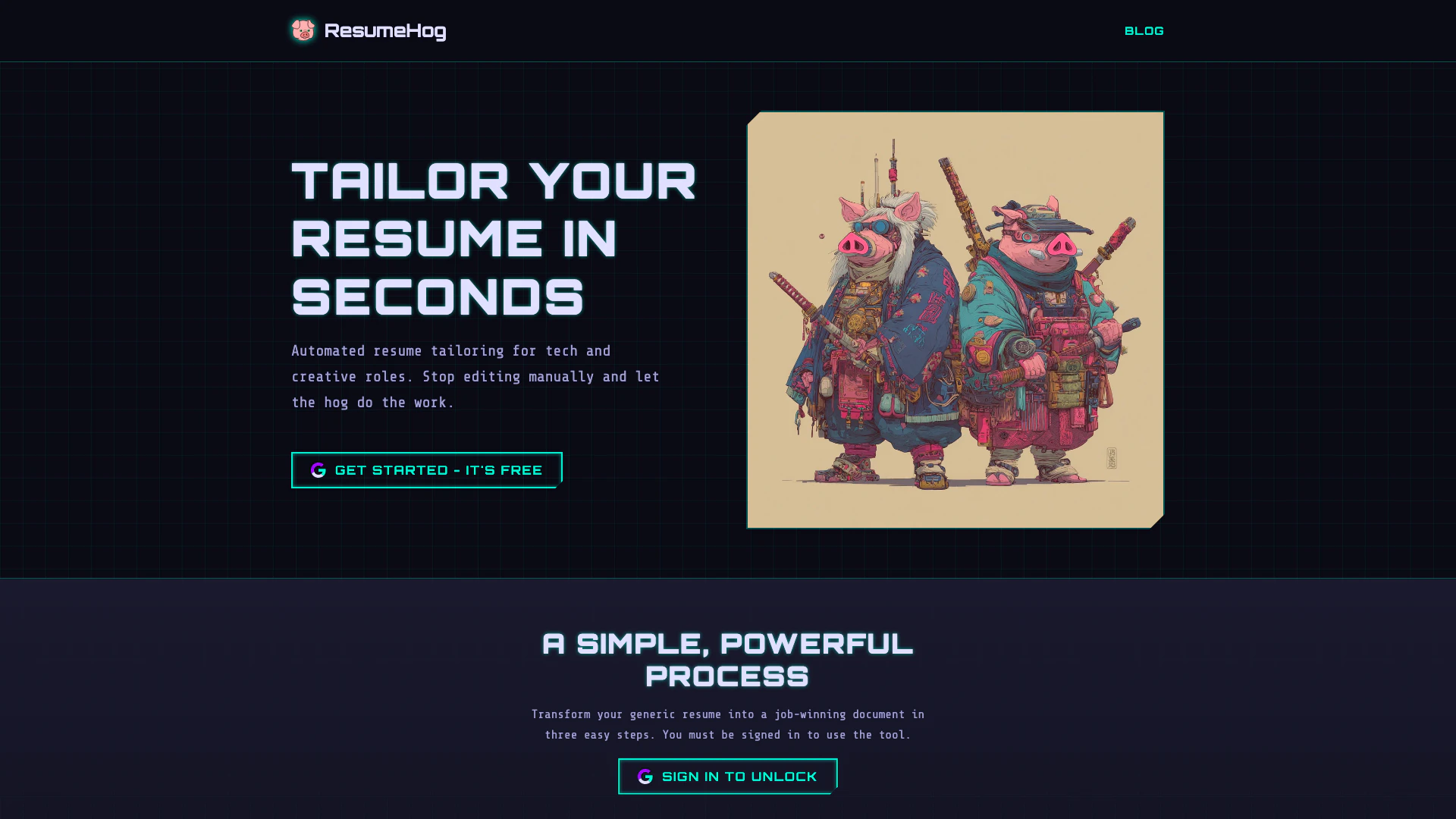 ResumeHog es una solución curiosamente nombrada pero elegante para una necesidad dolorosa y específica de los buscadores de empleo: transformar rápidamente un currículum para que se comunique directamente con una descripción de trabajo dada. Es tan agotador y desalentador hacer esto cientos de veces durante una búsqueda de empleo, sin mencionar que es una gran pérdida de tiempo. Pude ayudar a un familiar que ha estado en el mismo trabajo durante casi dos décadas a transformar su currículum para varias oportunidades laborales en dominios completamente diferentes.