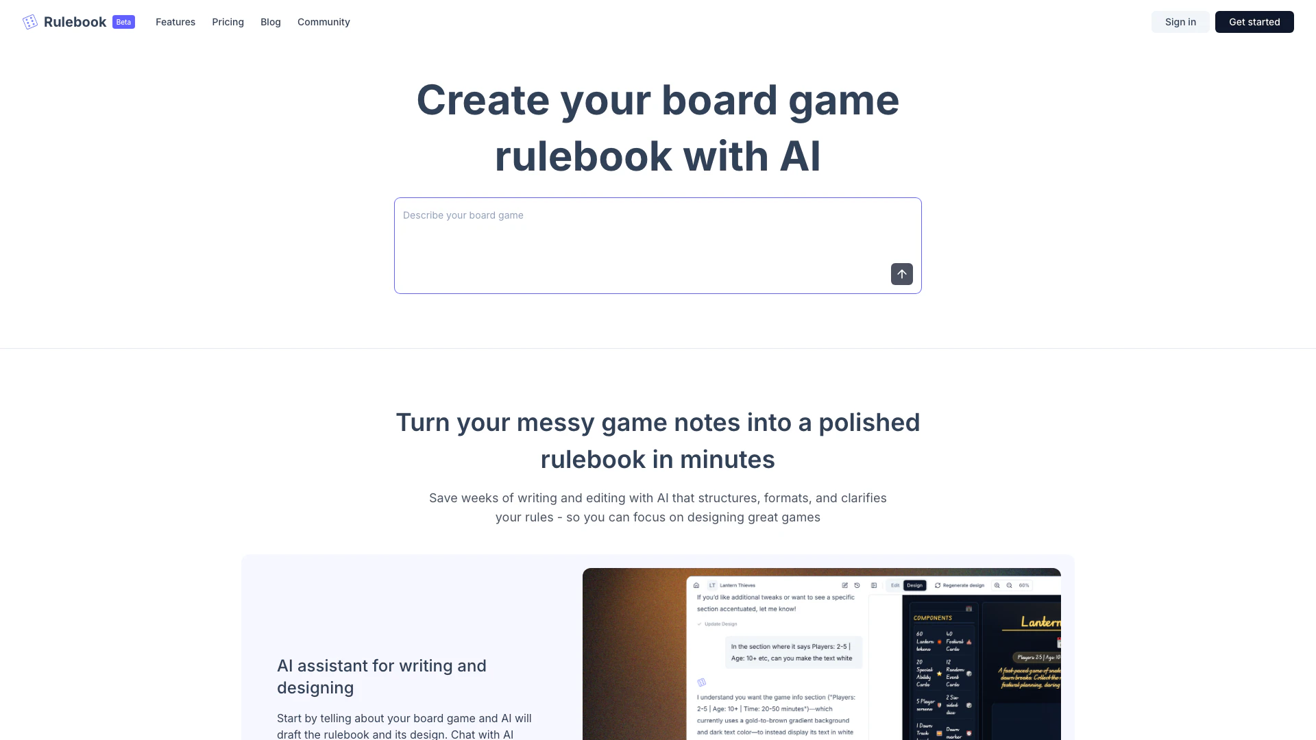 Rulebook.gg es una plataforma impulsada por IA diseñada para escribir y diseñar manuales de juegos de mesa.
