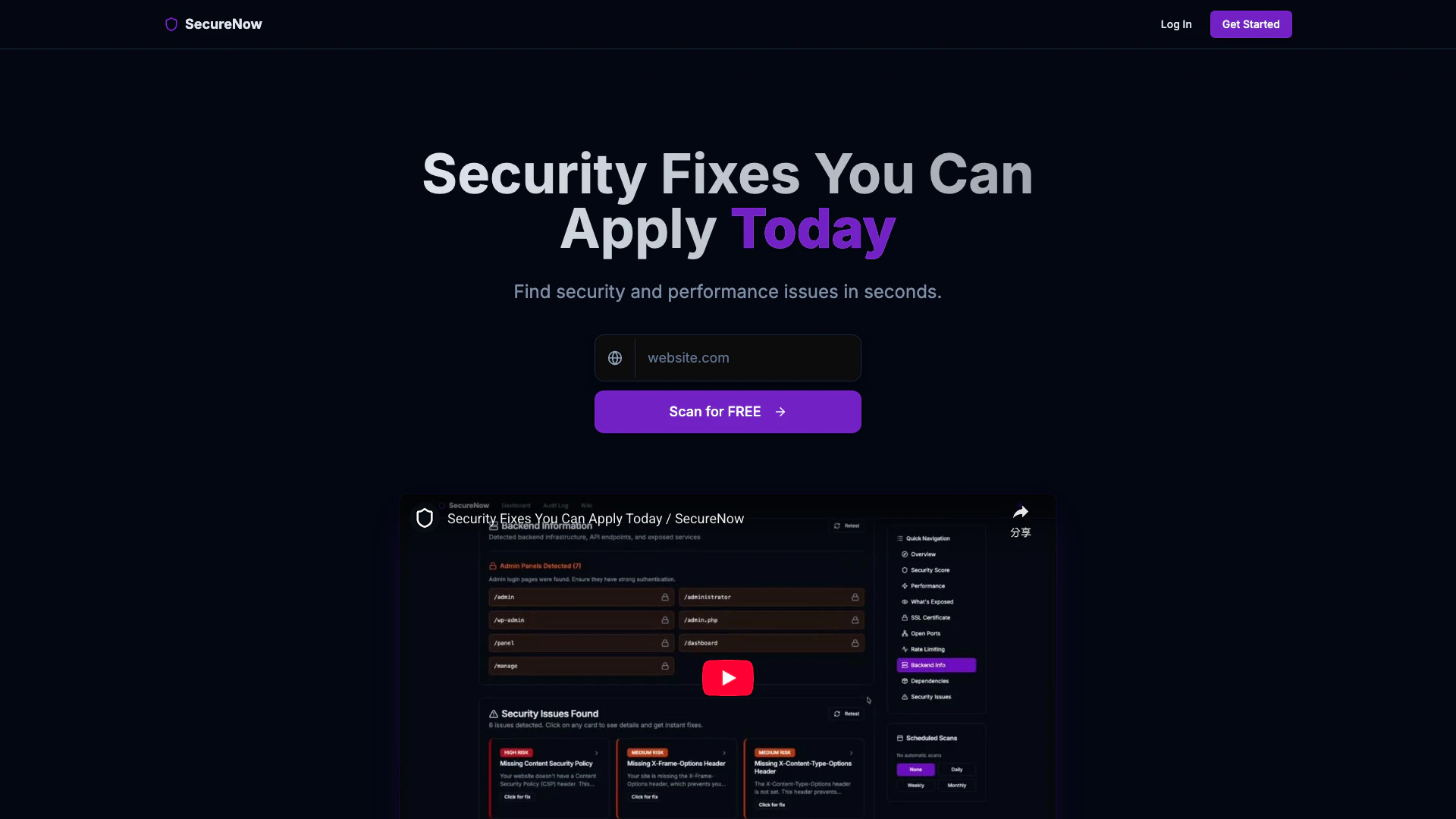 - Escaneo de Seguridad Automatizado: SecureNow ofrece escaneo de seguridad automatizado que permite a los usuarios proteger sus sitios web rápidamente, identificando vulnerabilidades y problemas de rendimiento en minutos.