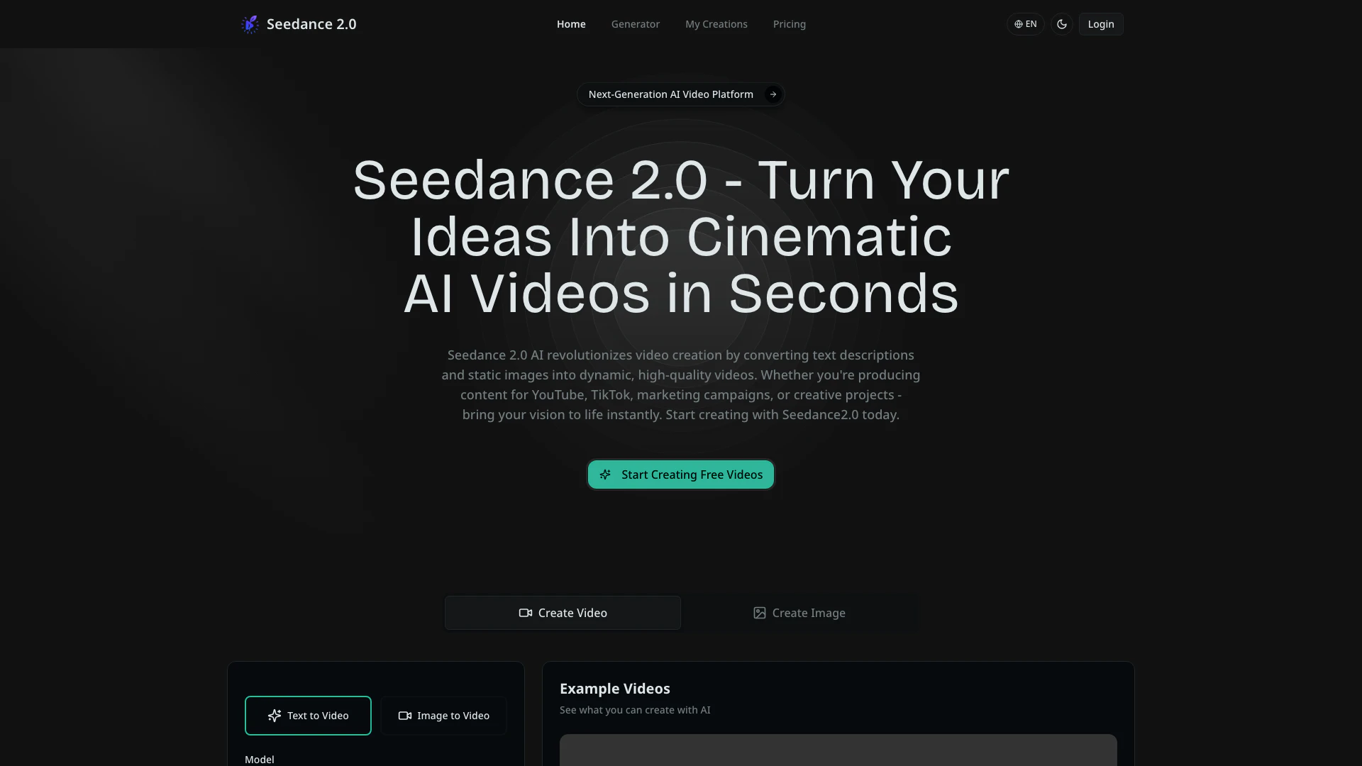 - Crea una cuenta: Visita el sitio web de Seedance 2.0 y regístrate para obtener una cuenta gratuita y recibir créditos para la creación de videos.