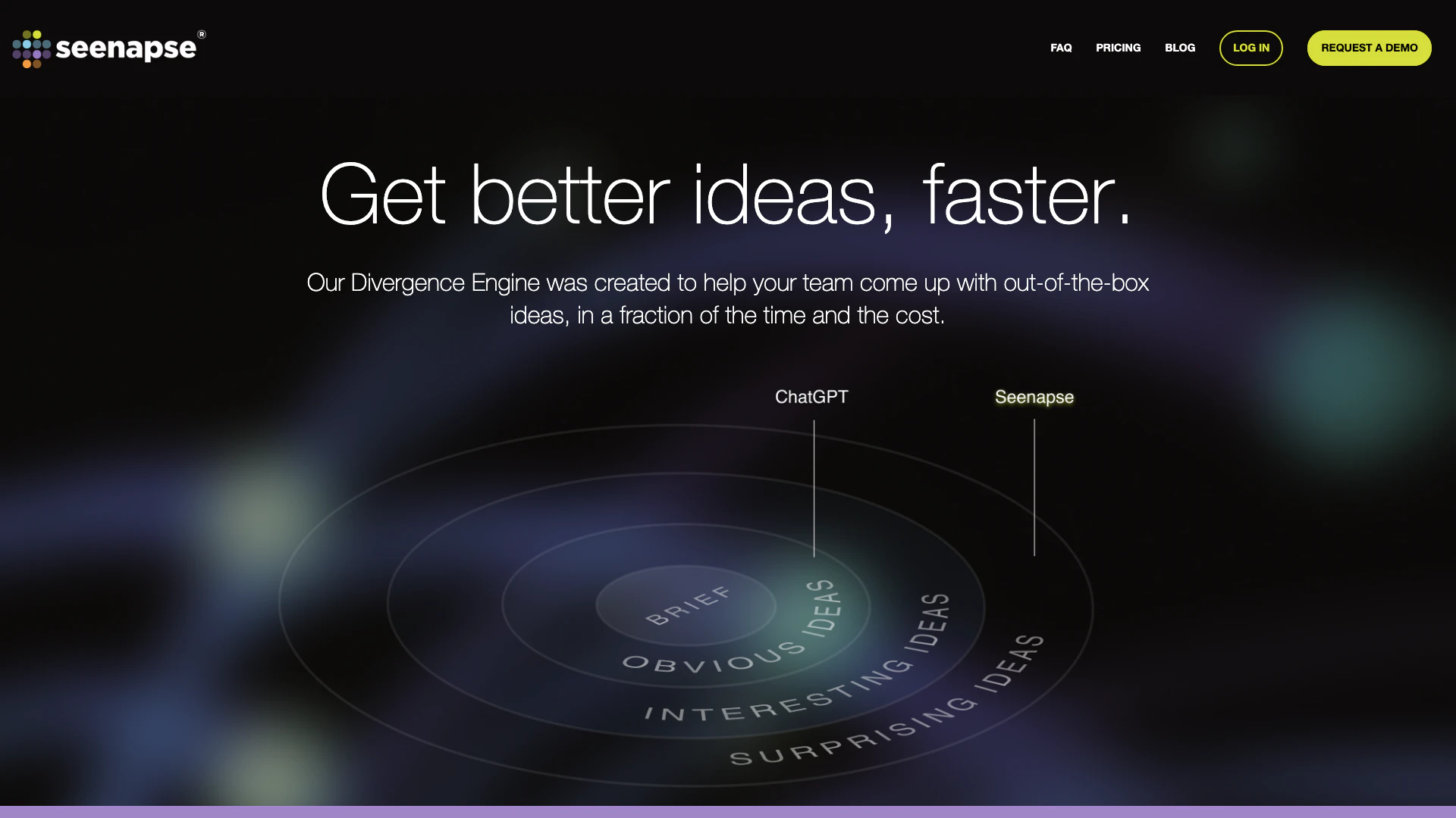 - Motor de Divergencia para Ideas Originales: El Motor de Divergencia de Seenapse genera más ideas originales en comparación con otras herramientas de IA, mejorando las sesiones de lluvia de ideas creativas.