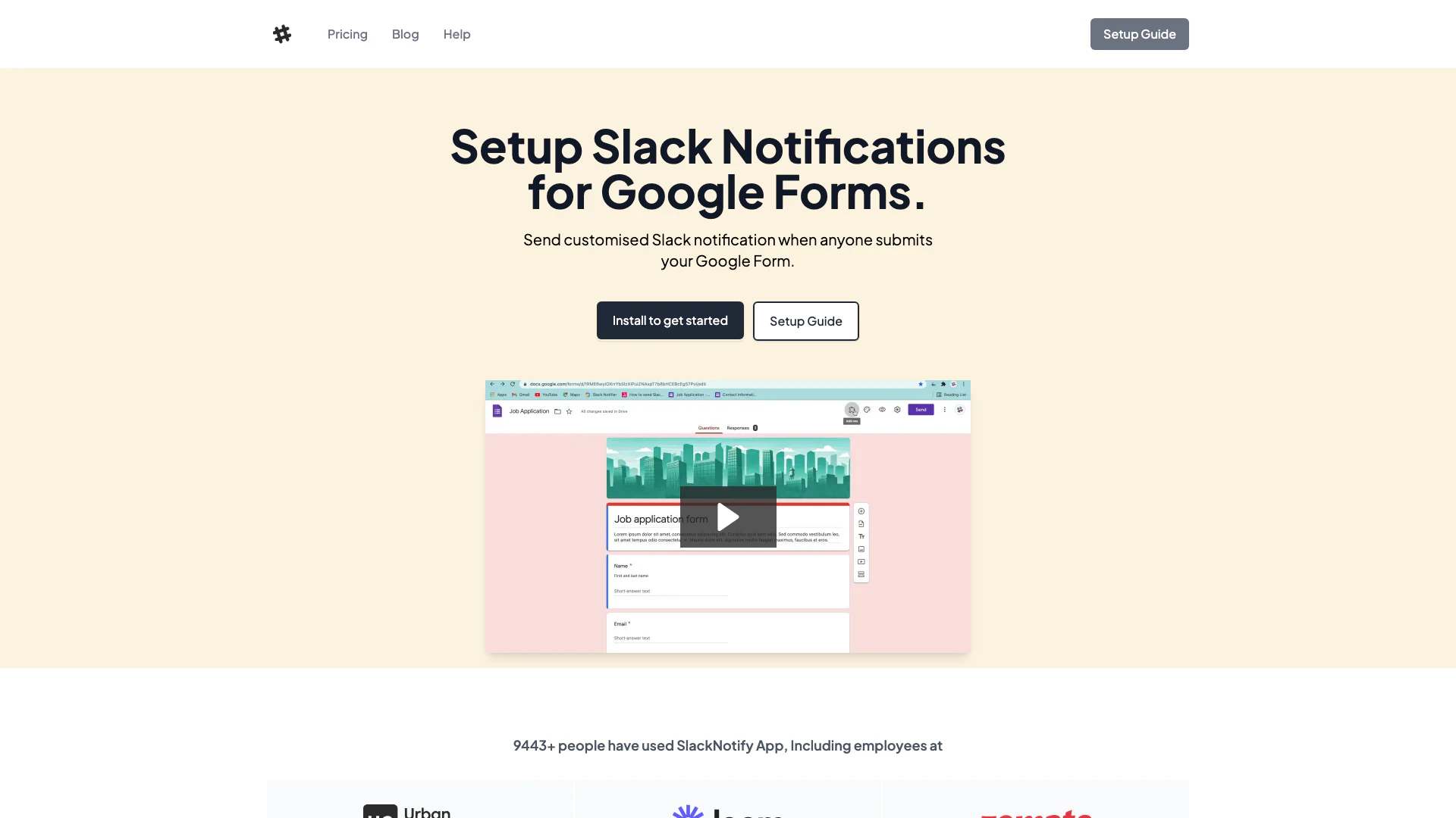 Envía notificaciones ilimitadas de Slack al enviar formularios de Google. Usa SlackNotify en hasta 100 formularios de Google por usuario. Mensaje Markdown y mensajes de carga útil personalizados. Las notificaciones se envían a Slack al enviar el formulario. No guardamos nada de eso.