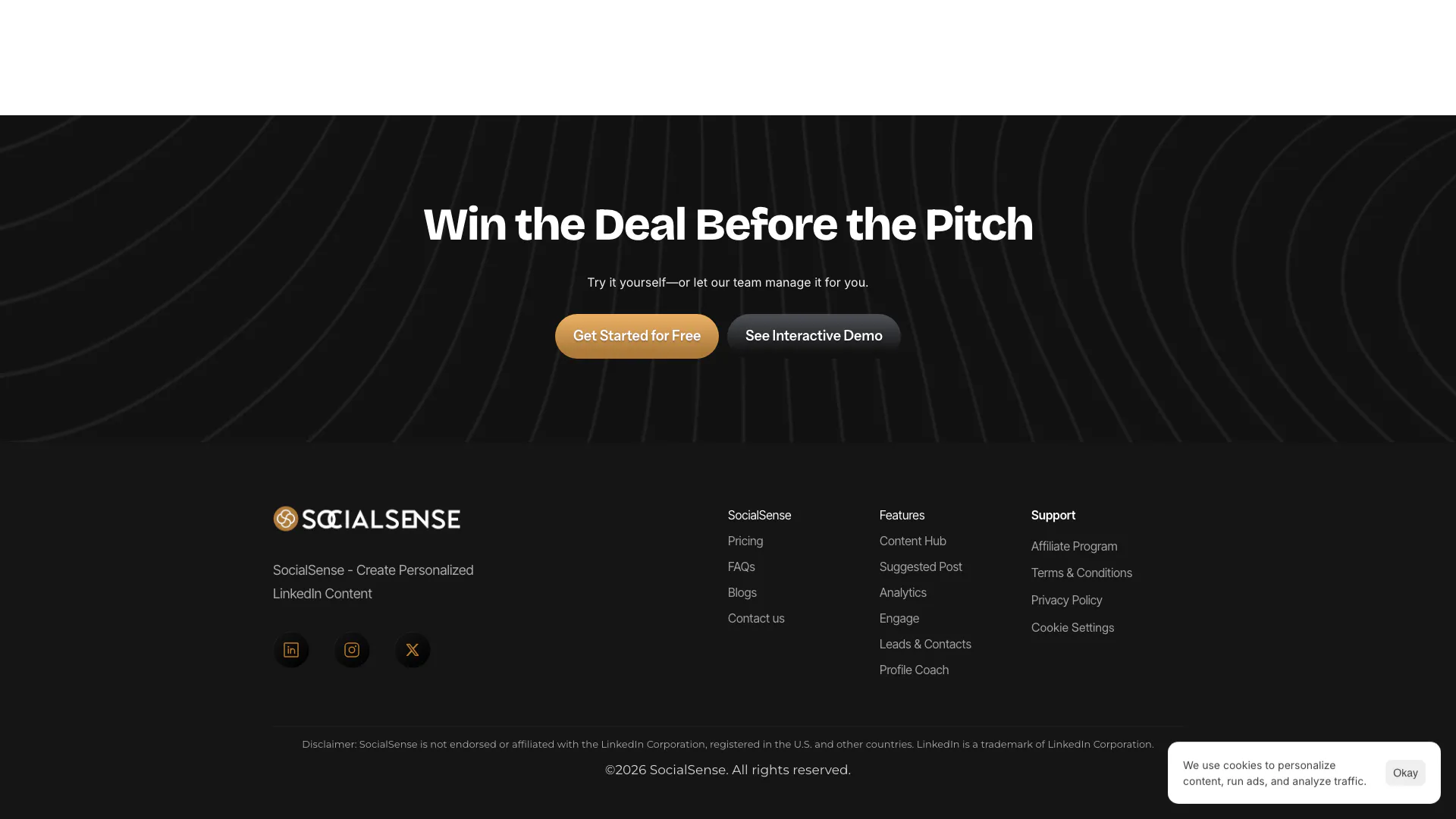 No, SocialSense es más que solo una herramienta de contenido. Está diseñado para mejorar tu actividad en LinkedIn a través de la creación de contenido impulsada por IA, estrategias de compromiso y análisis.