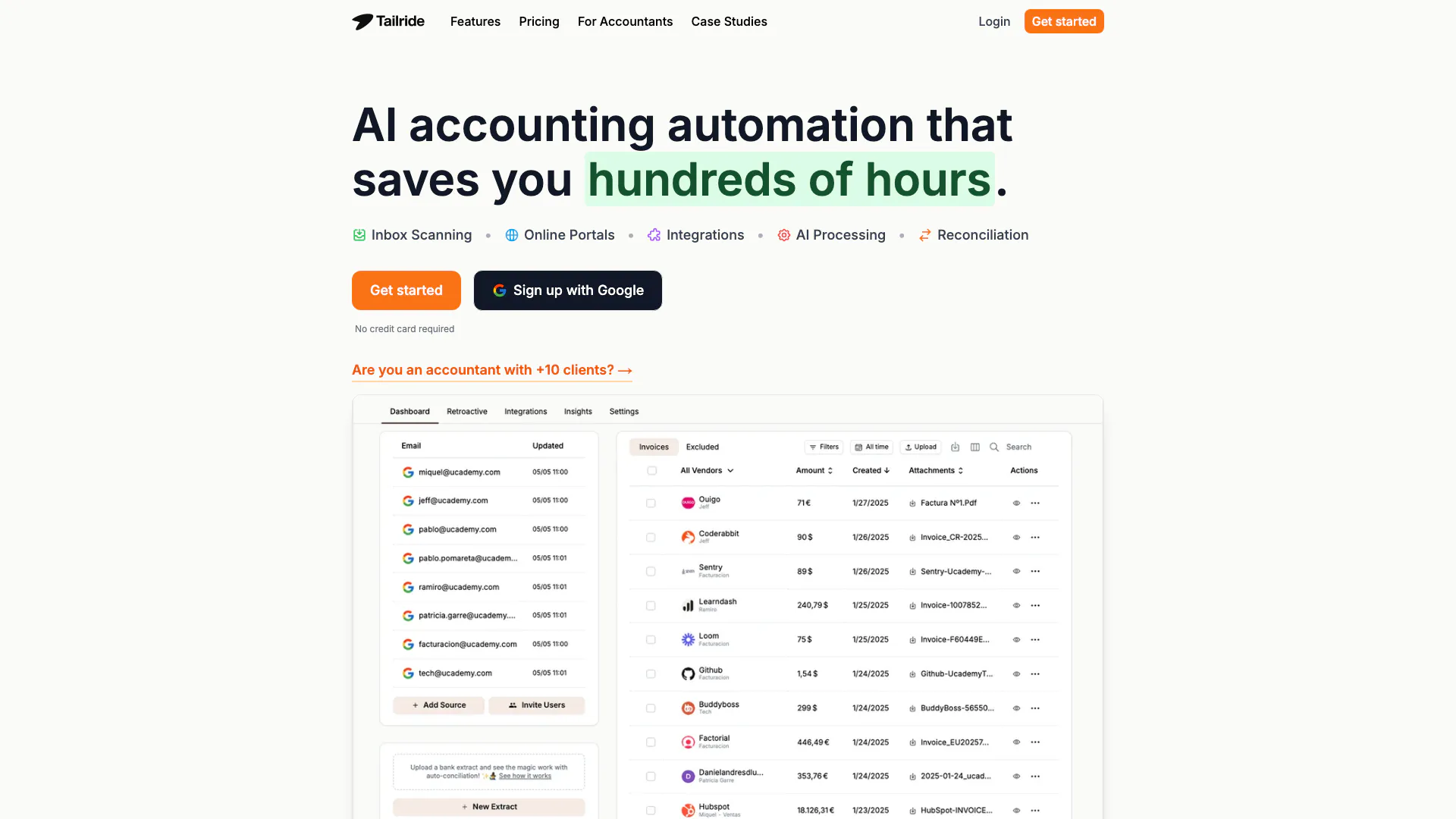- Automatización de la Recolección de Facturas: Las empresas pueden usar Tailride para recolectar automáticamente facturas de múltiples cuentas de correo electrónico y portales en línea, reduciendo la entrada manual.