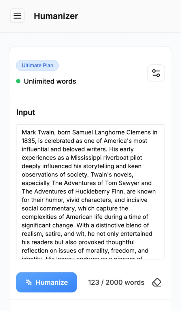 He probado muchos humanizadores de IA y TwainGPT es definitivamente el mejor.