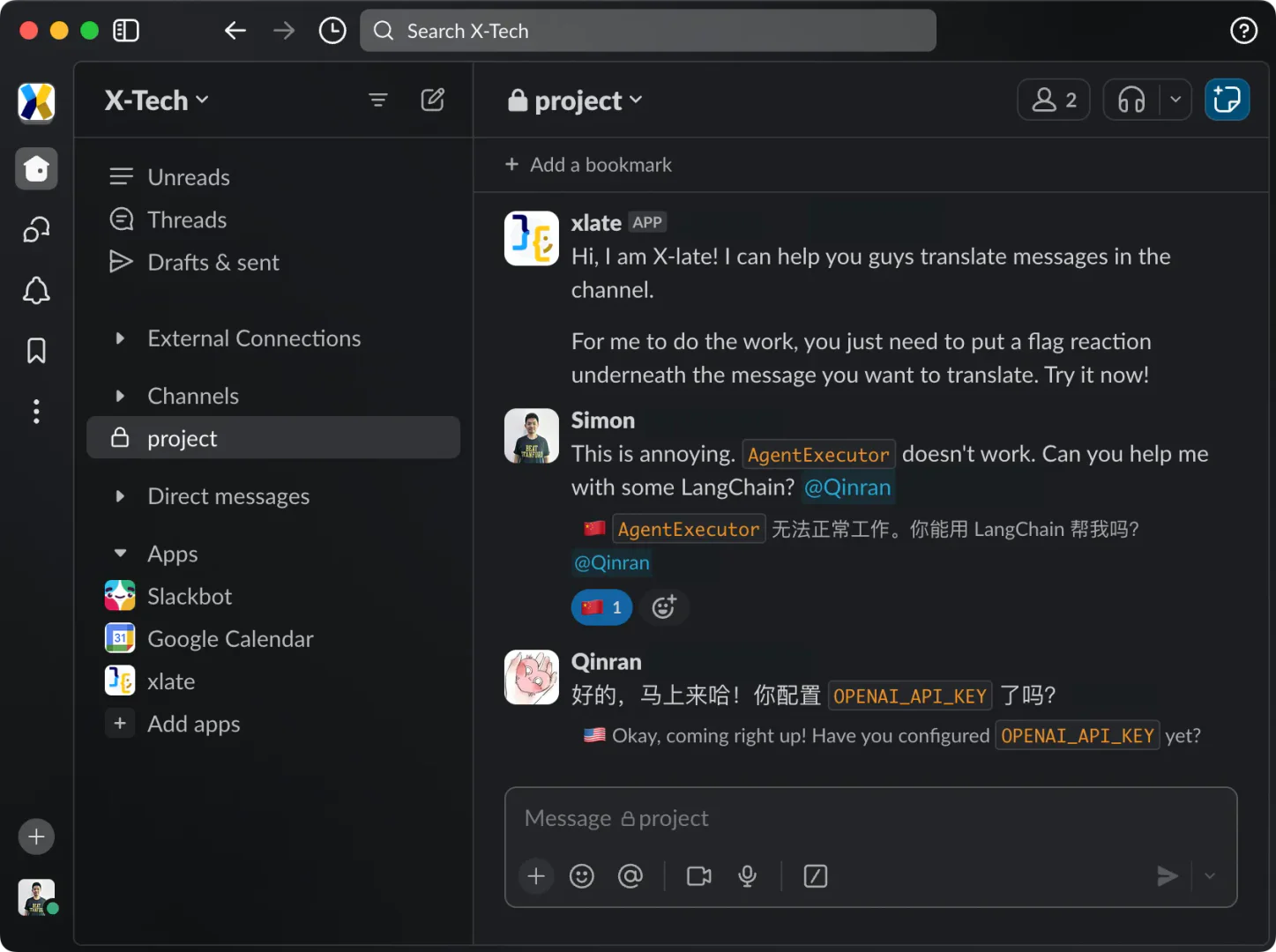 - Preserva el formato de Slack: A diferencia de otros bots de traducción, X-late mantiene el formato Markdown de Slack, asegurando que los mensajes aparezcan como se pretende.