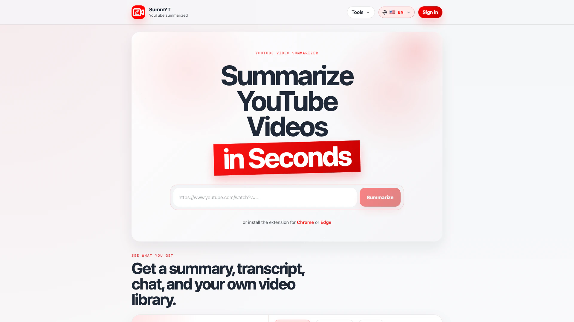 - Ve al sitio web de SummYT o instala la extensión del navegador para Chrome o Edge.