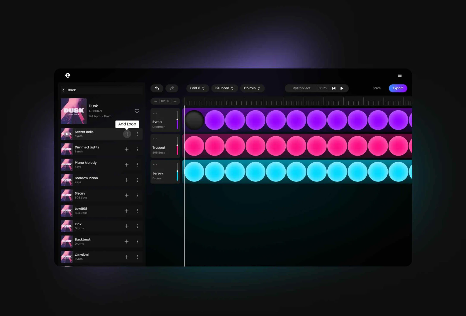 - Arrangez votre beat : Utilisez le séquenceur simple pour arranger les sons et boucles choisis selon votre style. Ajustez les éléments pour correspondre à votre vision créative.