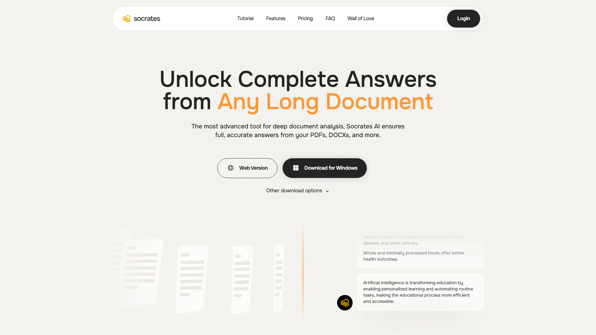 - Analyse Documentaire Avancée: Socrates AI offre une analyse approfondie des documents, fournissant des réponses complètes et précises à partir de divers formats de fichiers tels que PDF et DOCX.