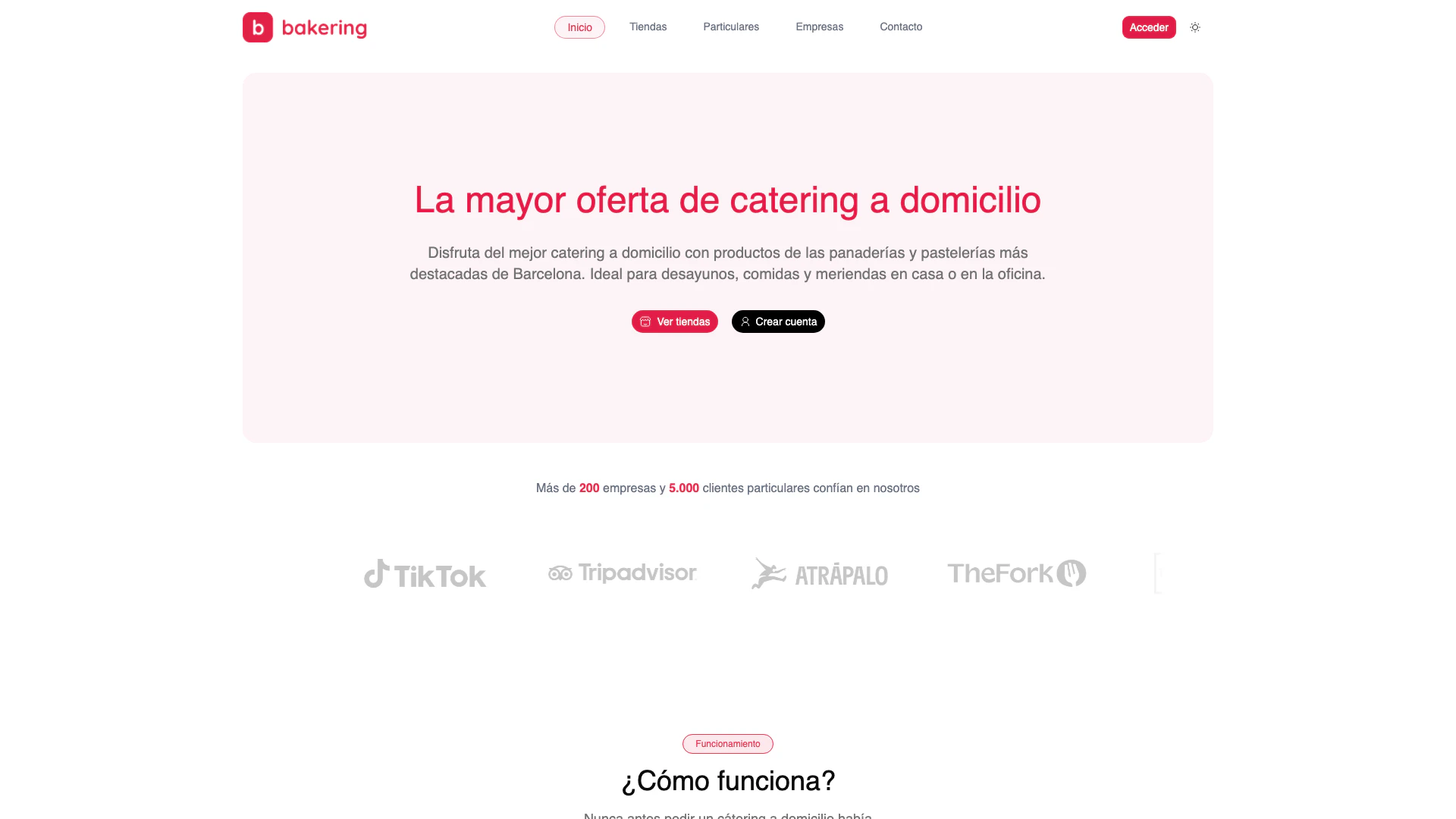 Bakering est une plateforme web et une application mobile conçues pour commander des services de traiteur auprès des meilleures boulangeries et pâtisseries de Barcelone. Elle se spécialise dans la fourniture de délicieux petits déjeuners, repas et collations livrés directement chez vous ou au bureau. Avec un accent sur la qualité artisanale, Bakering connecte les clients avec plus de 200 établissements de confiance, garantissant que chaque commande reflète le meilleur de l'artisanat culinaire local. Que vous planifiez un événement d'entreprise ou une réunion décontractée, Bakering offre une expérience fluide pour profiter de produits gastronomiques dans le confort de votre propre espace.