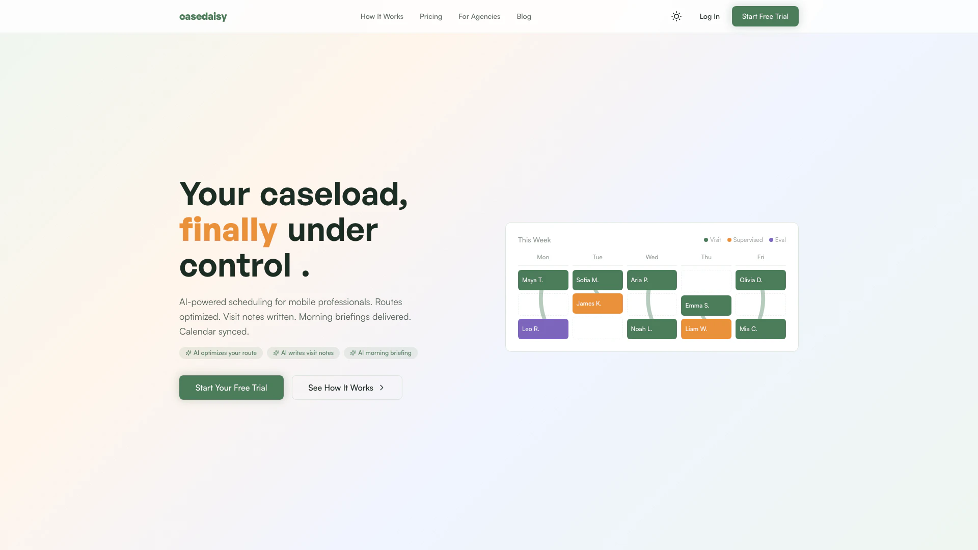 Casedaisy est un outil de planification alimenté par l'IA, conçu pour les professionnels mobiles tels que les thérapeutes, les travailleurs sociaux, les agents immobiliers et les vétérinaires mobiles. Il optimise les itinéraires, gère les notes des clients et se synchronise avec les calendriers pour rationaliser la planification.