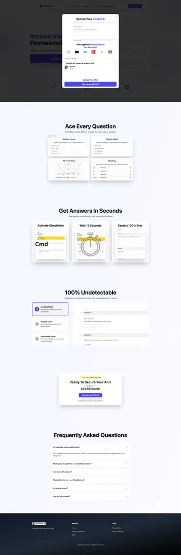 - Passer des examens en ligne : Utilisez CheatMate lors des évaluations en ligne pour obtenir des réponses précises sans détection.