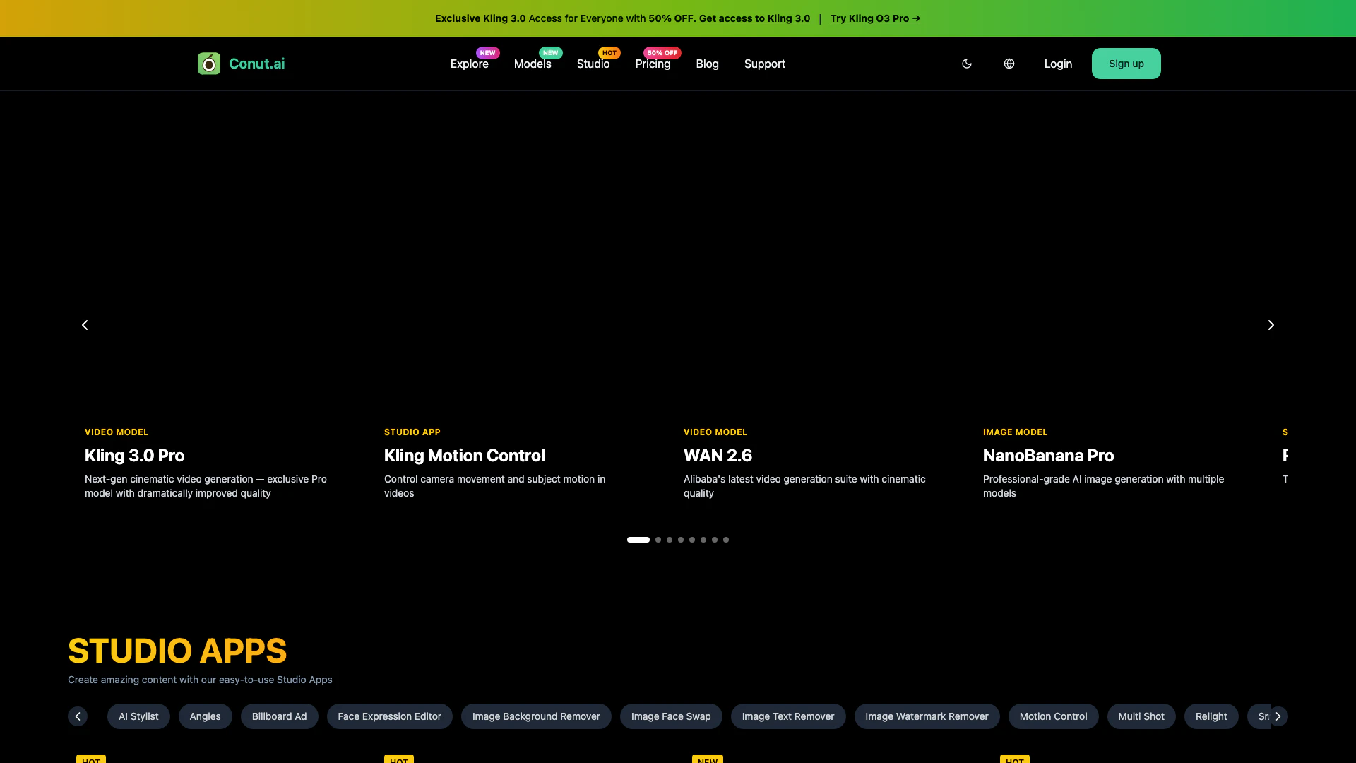 - Modèles d'IA Avancés: Conut.ai offre un accès à des modèles d'IA de pointe comme NanoBanana Pro et Sora 2, améliorant les capacités de génération d'images et de vidéos.