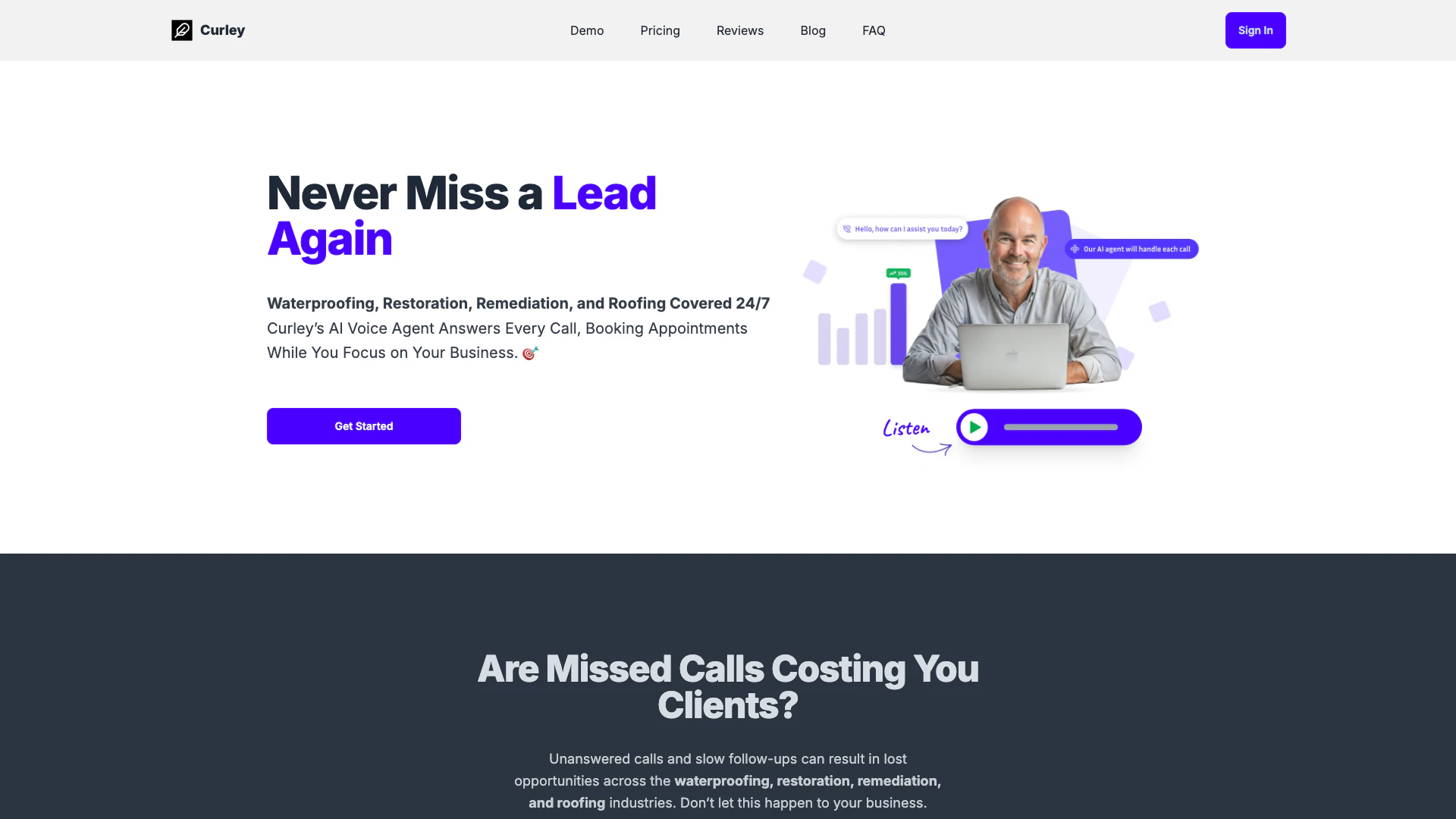 - Disponibilité 24/7: Curley propose un service 24/7, garantissant que tous les appels sont répondus et que les rendez-vous sont pris à tout moment, ce qui aide à capter des prospects sans manquer d'opportunités.