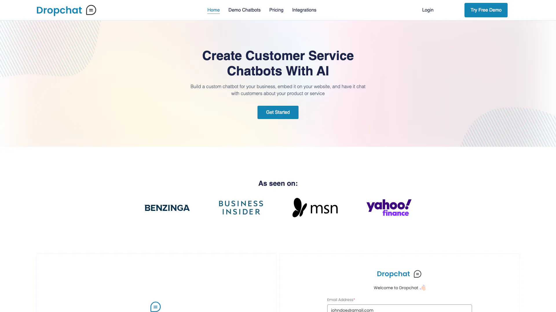 - Commencer un essai gratuit : Visitez le site Web de Dropchat et accédez à la page d'essai. Vous pouvez commencer à créer votre chatbot sans aucune inscription requise.
