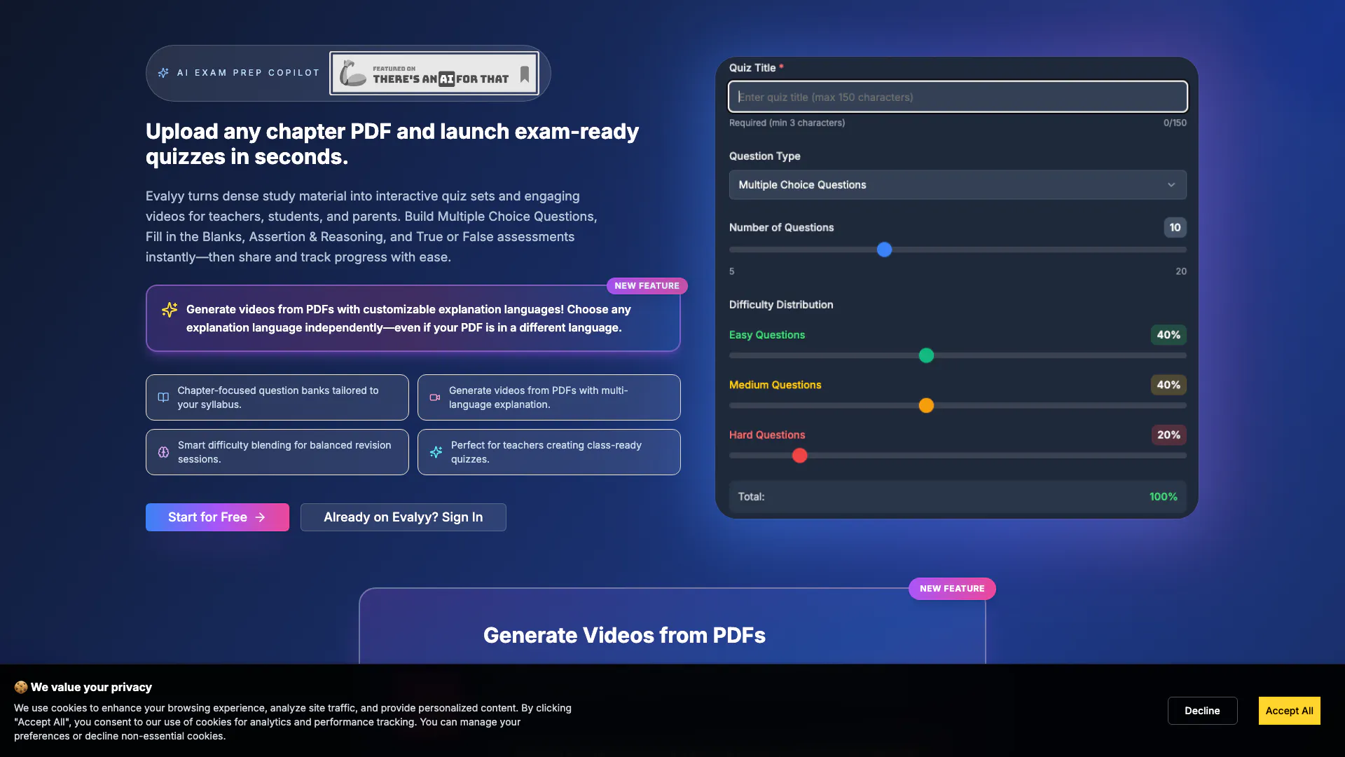 Evalyy transforme des PDF en quiz interactifs et vidéos.