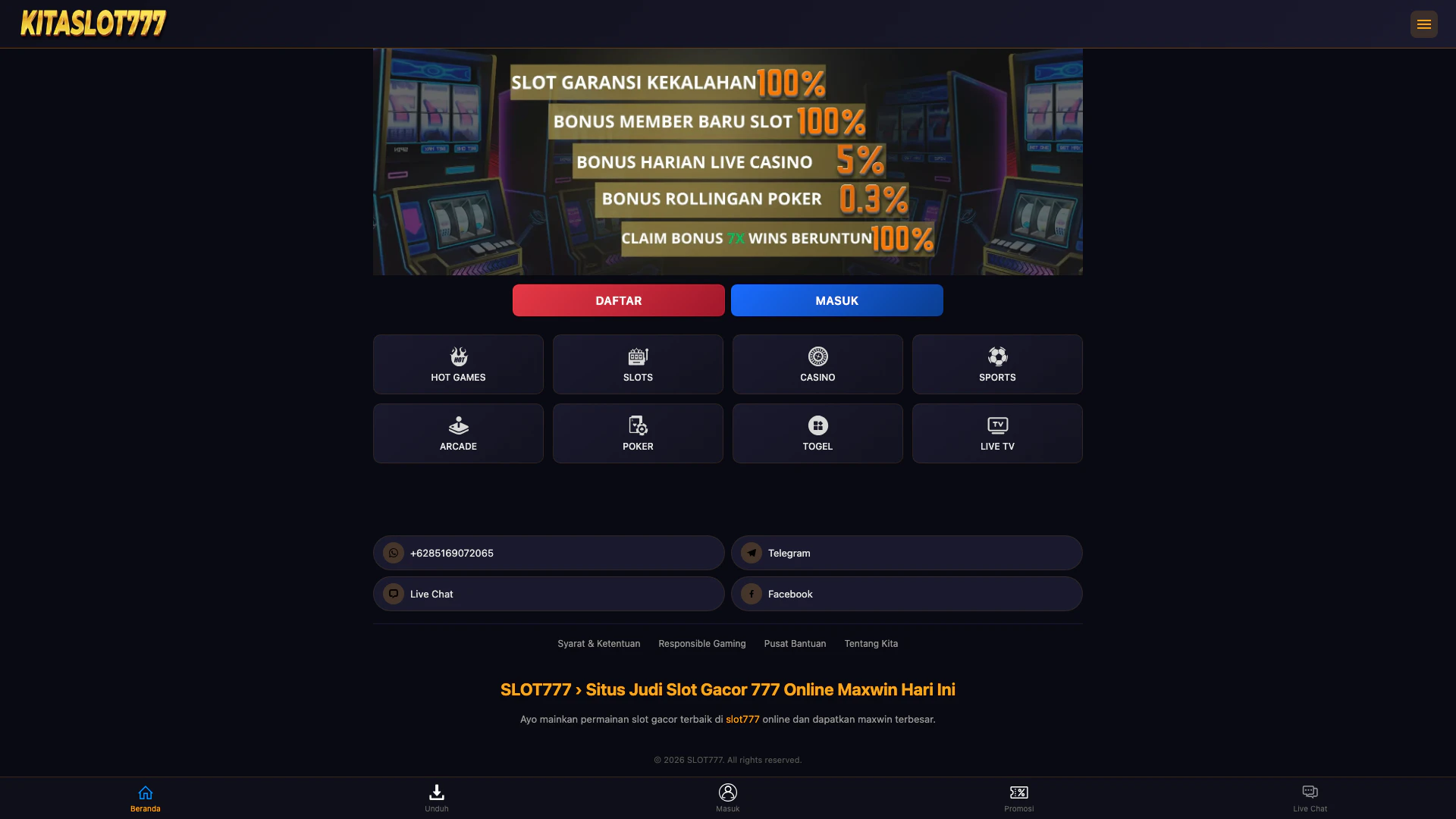 - Large variété de jeux de machines à sous, y compris Slot777.