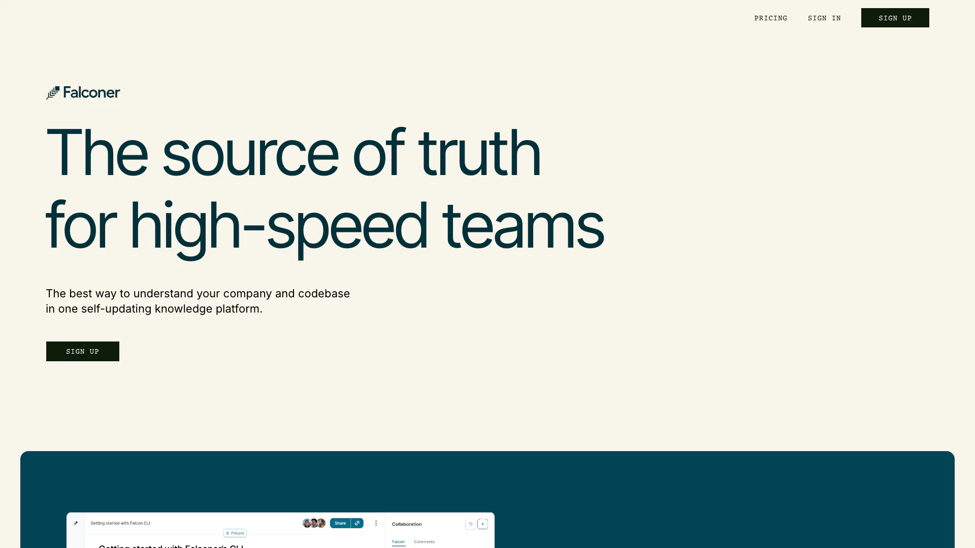 - Commencez à écrire et à partager de la documentation au sein de Falconer, en utilisant ses fonctionnalités auto-mises à jour pour garder les informations organisées et précises.