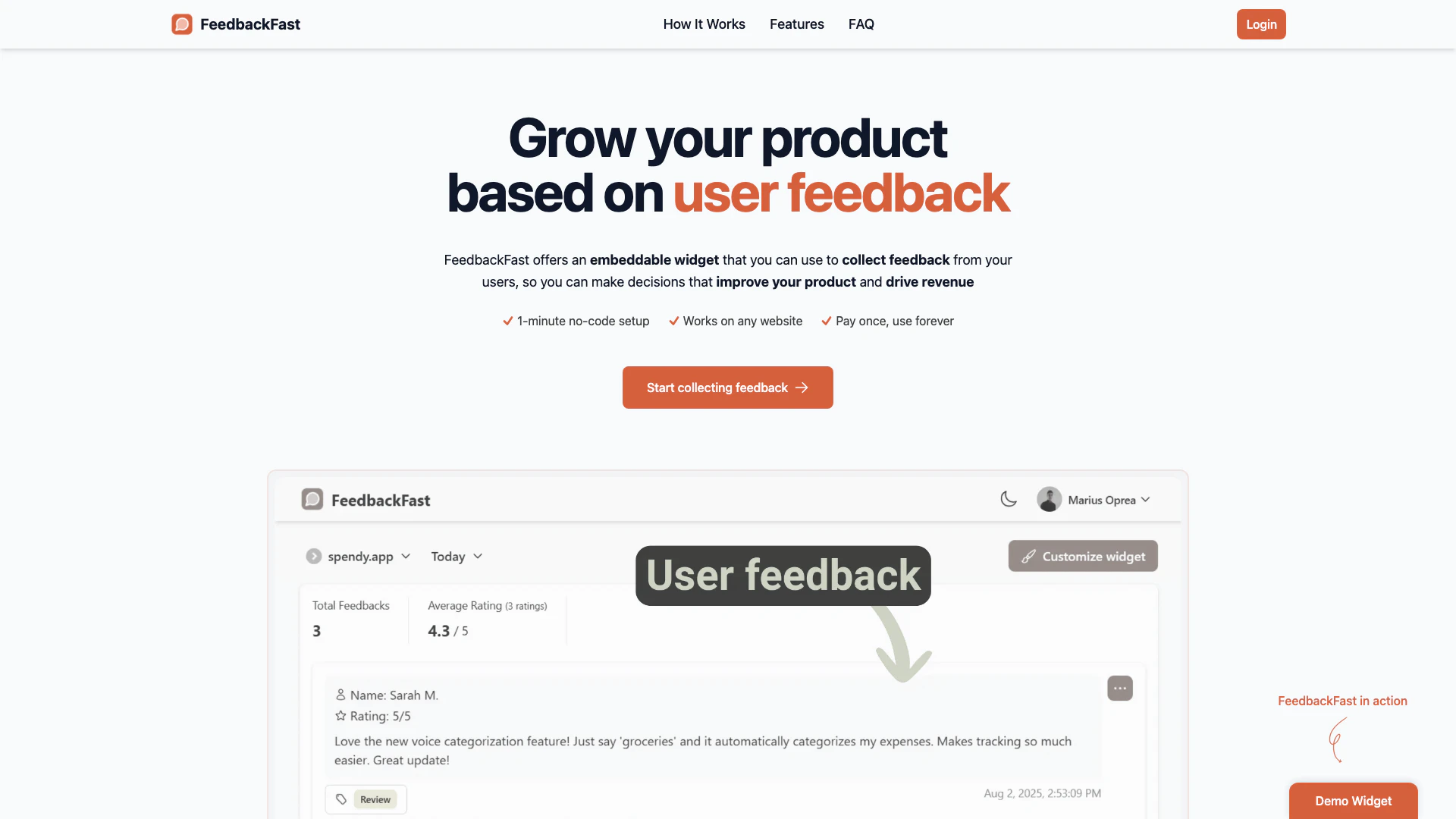 - Configuration Facile: FeedbackFast propose une configuration sans code qui prend moins d'une minute, permettant aux utilisateurs d'intégrer rapidement le widget de feedback sur leurs sites web.