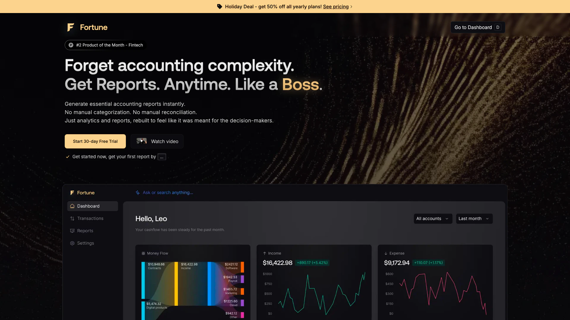 - Aperçus financiers pilotés par l'IA: Fortune propose des analyses pilotées par l'IA qui fournissent des informations financières en temps réel sur tous les comptes bancaires, permettant ainsi une meilleure prise de décision commerciale.