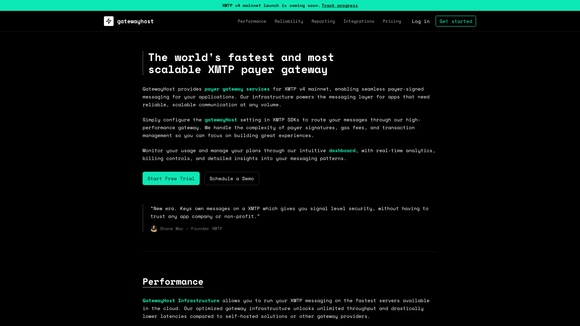 GatewayHost est la passerelle de paiement XMTP la plus rapide et évolutive au monde, offrant une infrastructure de messagerie de niveau entreprise avec des analyses en temps réel et une intégration SDK transparente.