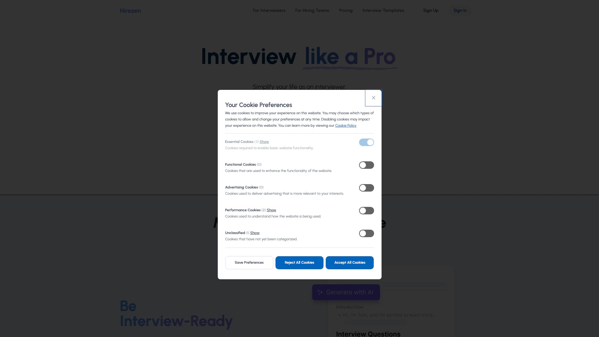 - Plans d'entretien générés par IA: Hirezen propose des plans d'entretien générés par IA avec des questions sur mesure, économisant du temps et améliorant la préparation à l'entretien.