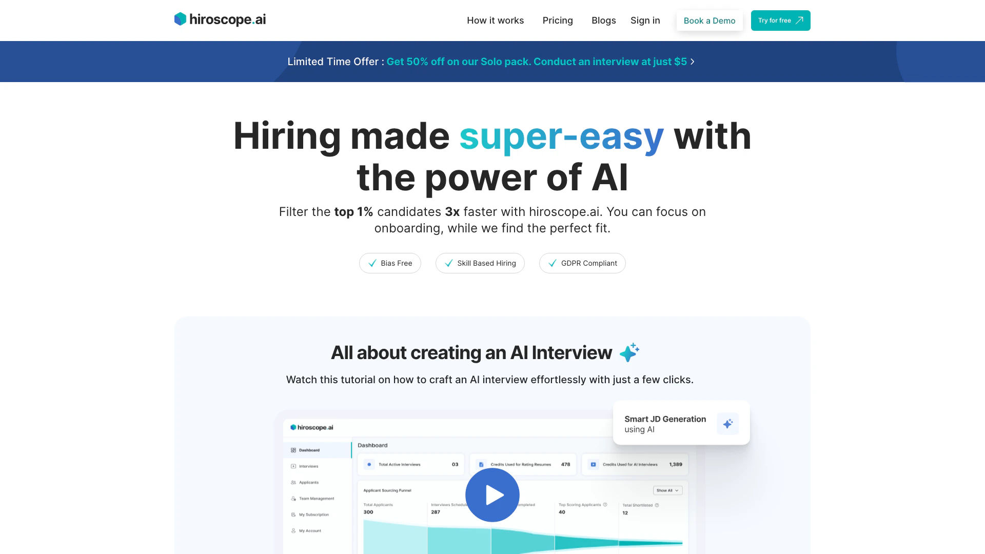- Entretiens vidéo alimentés par l'IA: hiroscope.ai propose un logiciel d'entretiens vidéo alimenté par l'IA qui simplifie le processus de planification des entretiens, permettant une évaluation efficace des candidats.