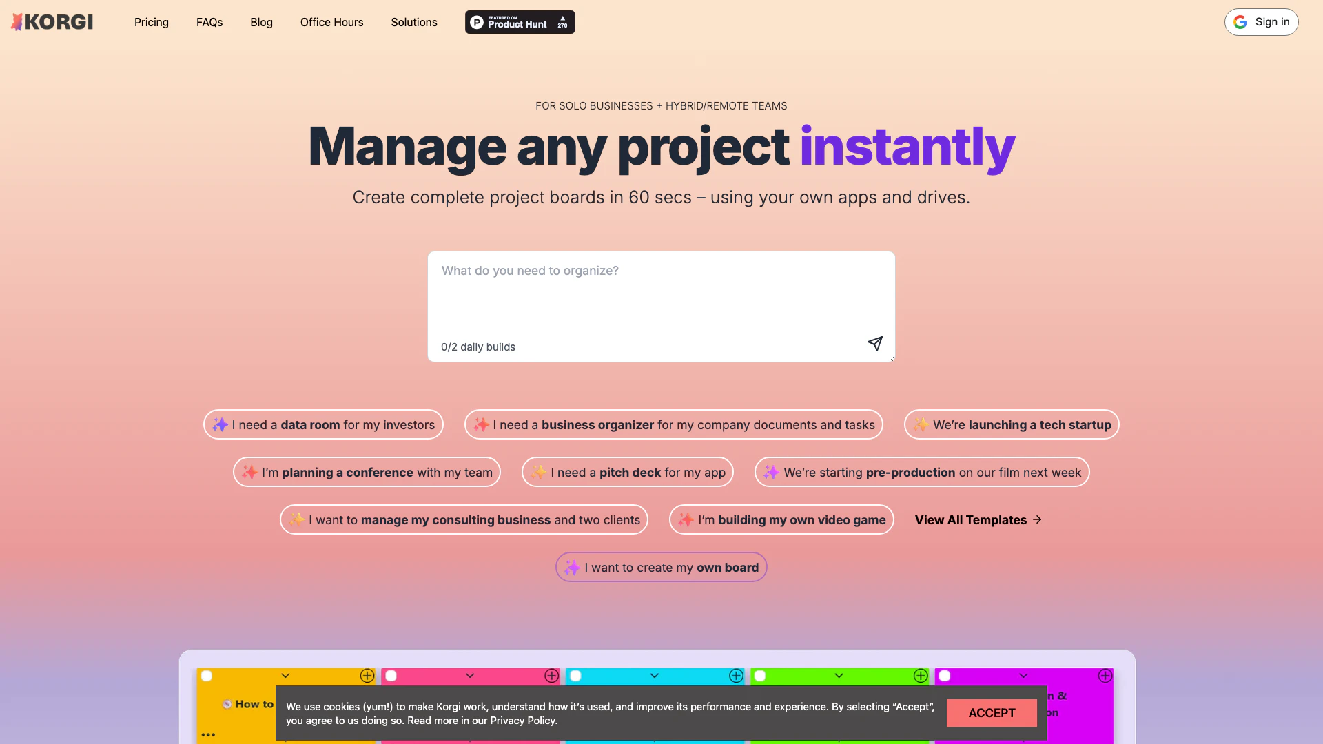 - Gestion de projet alimentée par l'IA: Korgi utilise l'IA pour rationaliser la gestion de projet, permettant aux utilisateurs de créer rapidement et efficacement des tableaux de projet complets.