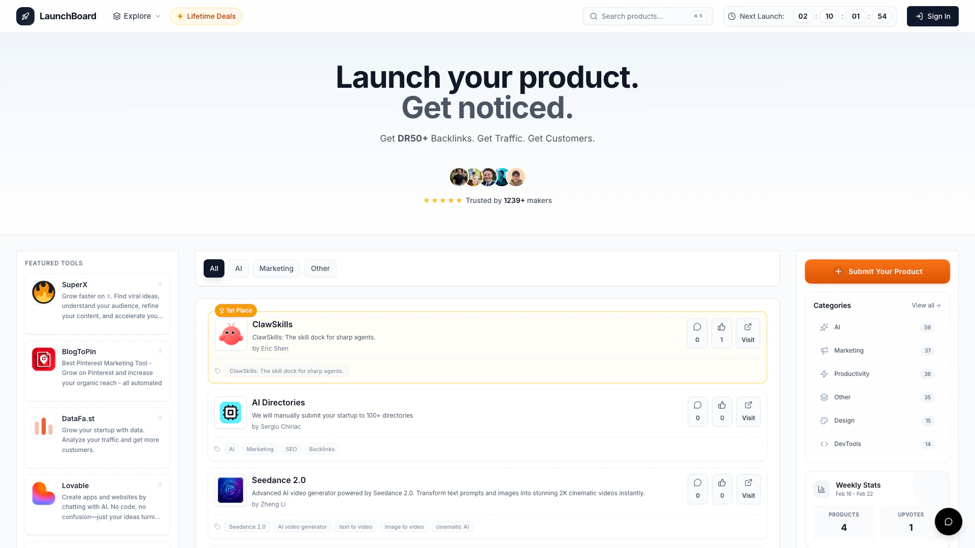 - Lancements de Produits Hebdomadaires: LaunchBoard propose de nouveaux produits chaque lundi, offrant une plateforme ciblée pour les créateurs indépendants et les startups afin d'obtenir de la visibilité.