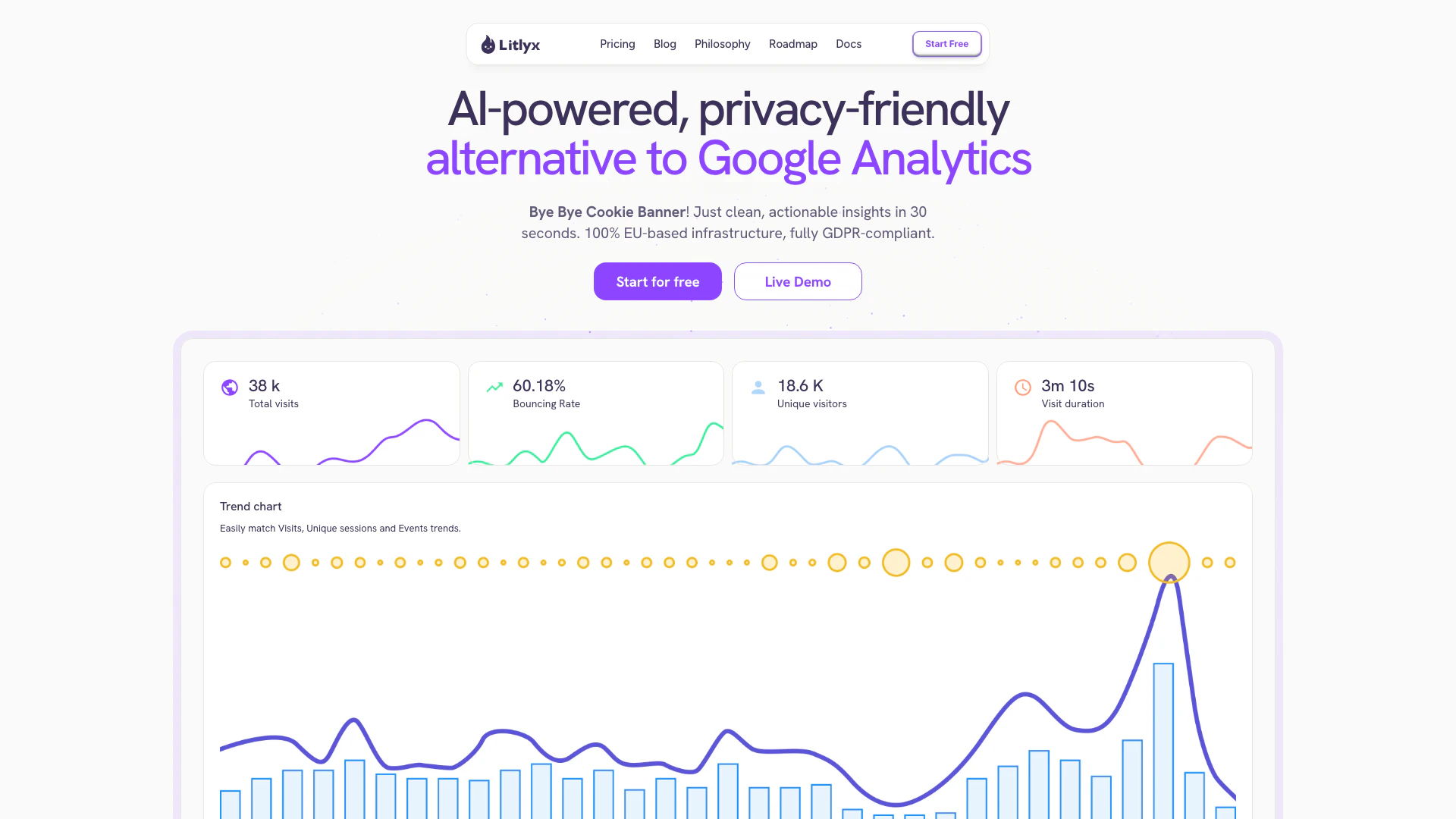 - Interface Conviviale: Litlyx propose une interface utilisateur claire et intuitive qui simplifie la navigation et l'interprétation des données, la rendant accessible à tous les utilisateurs.