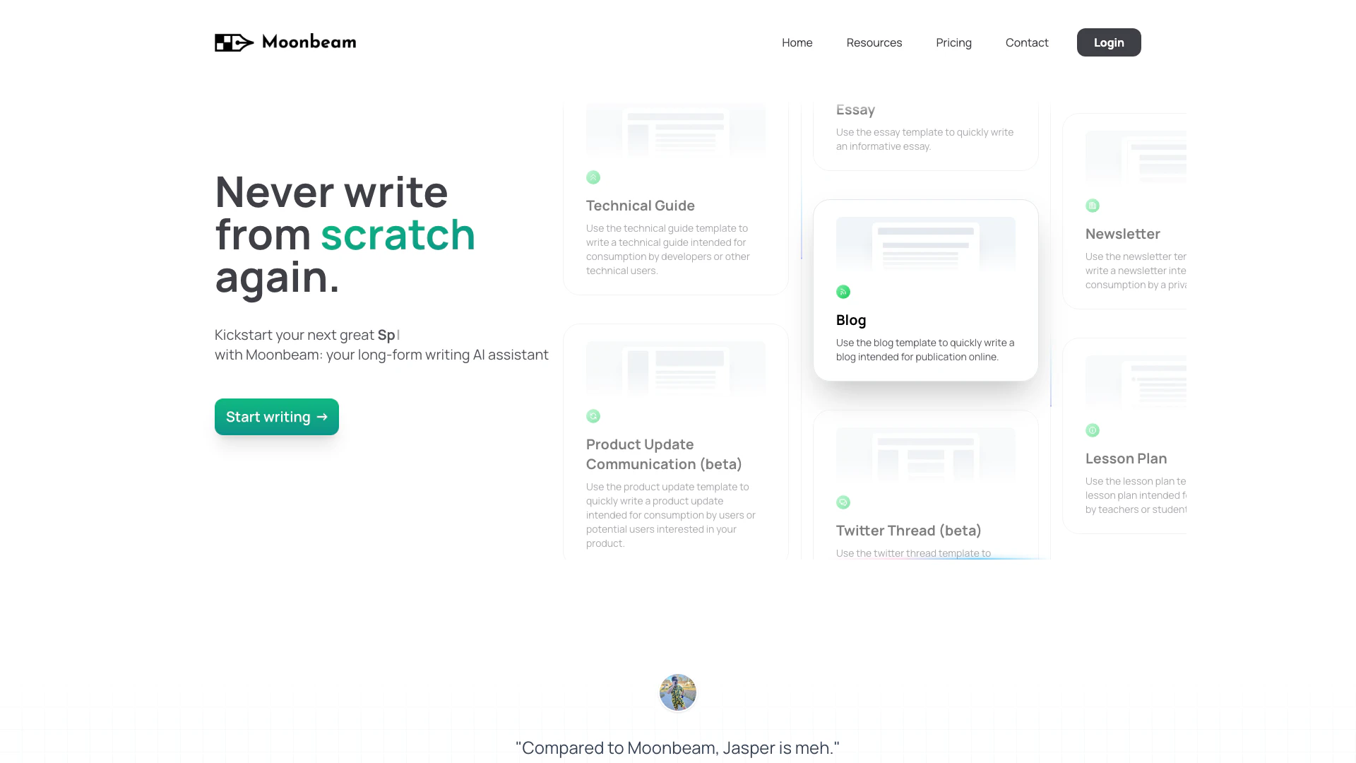 - Assistance à l'écriture alimentée par l'IA: Moonbeam offre un soutien basé sur l'IA pour l'écriture de longs textes, facilitant la création d'essais, d'articles et de blogs sans partir de zéro.
