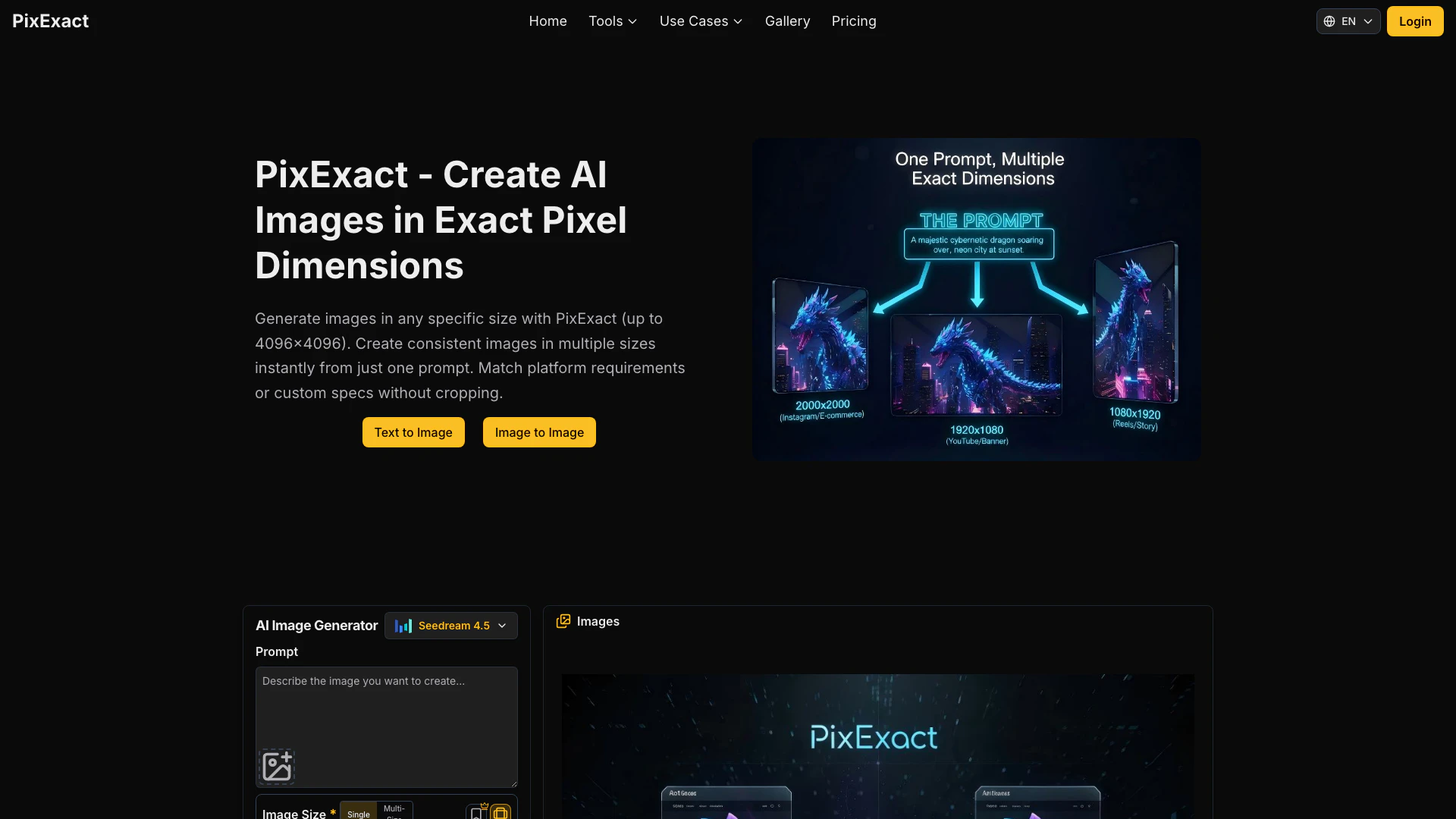 - Dimensions de Pixel Exactes: PixExact permet aux utilisateurs de générer des images dans des tailles de pixel exactes, éliminant ainsi le besoin de recadrage et garantissant une composition parfaite.