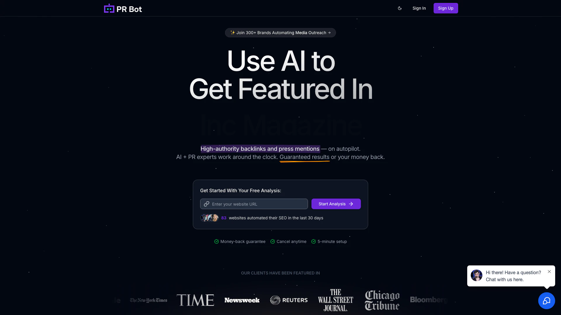 Mettez votre création de liens PR en pilote automatique. 1 Profil/Site Actif, 100+ Pitches Mensuels, 3 Plates-formes PR Premium, Pitches AI Révisés par des Humains, Backlinks Illimités, 3+ Backlinks DR30+ GARANTIS ou Remboursement.