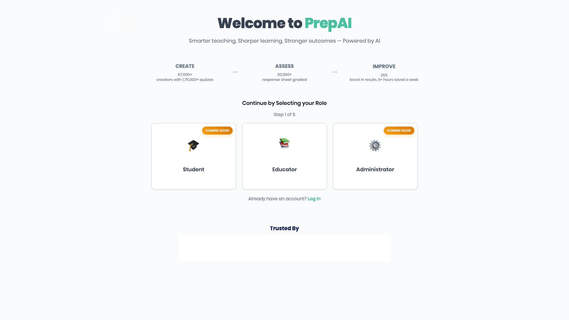 - Visitez le site Web de PrepAI et sélectionnez votre rôle (Étudiant, Éducateur ou Administrateur).