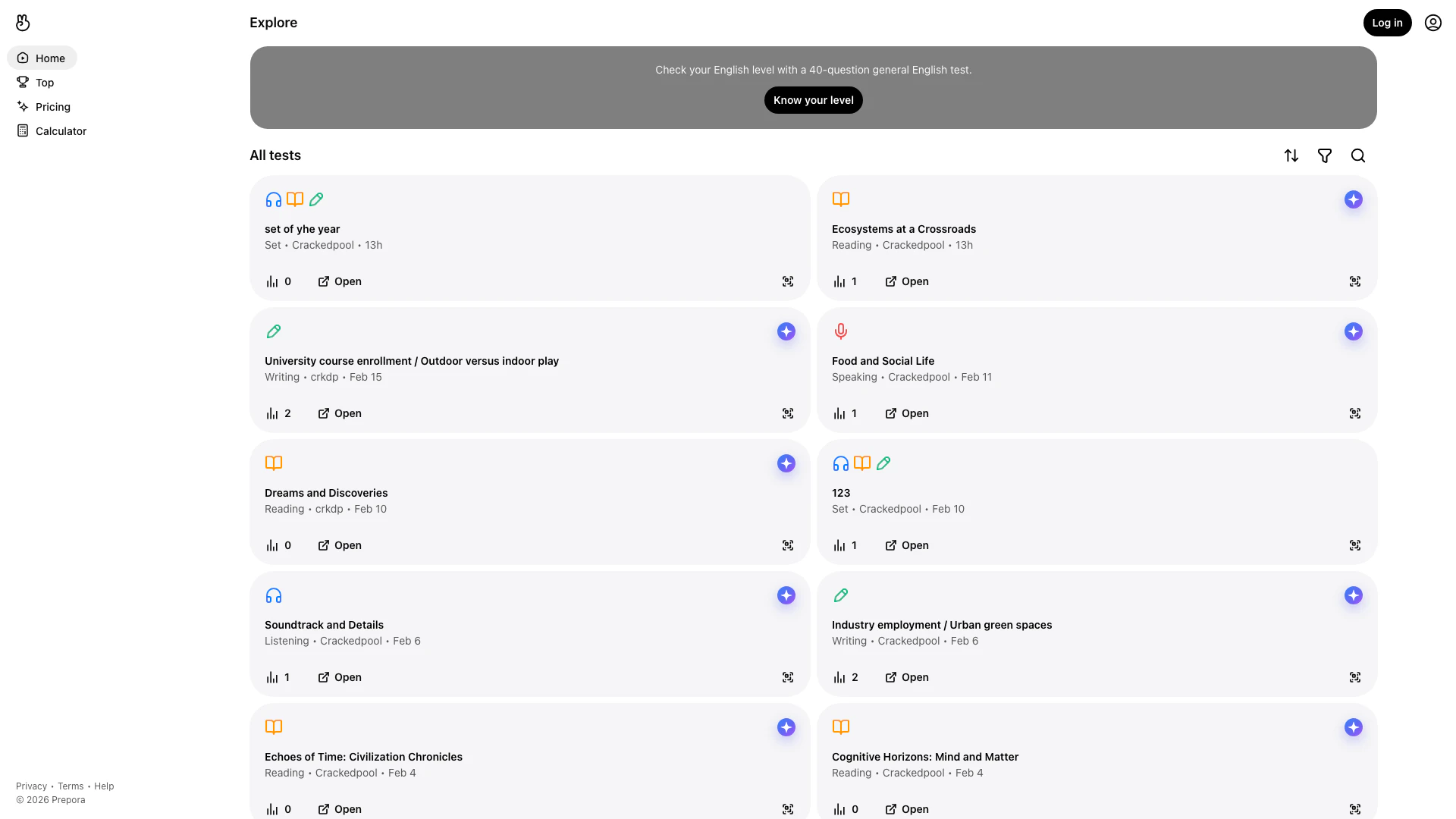 - Engagement communautaire: Prepora permet aux utilisateurs d'explorer des tests communautaires, favorisant un environnement d'apprentissage collaboratif.