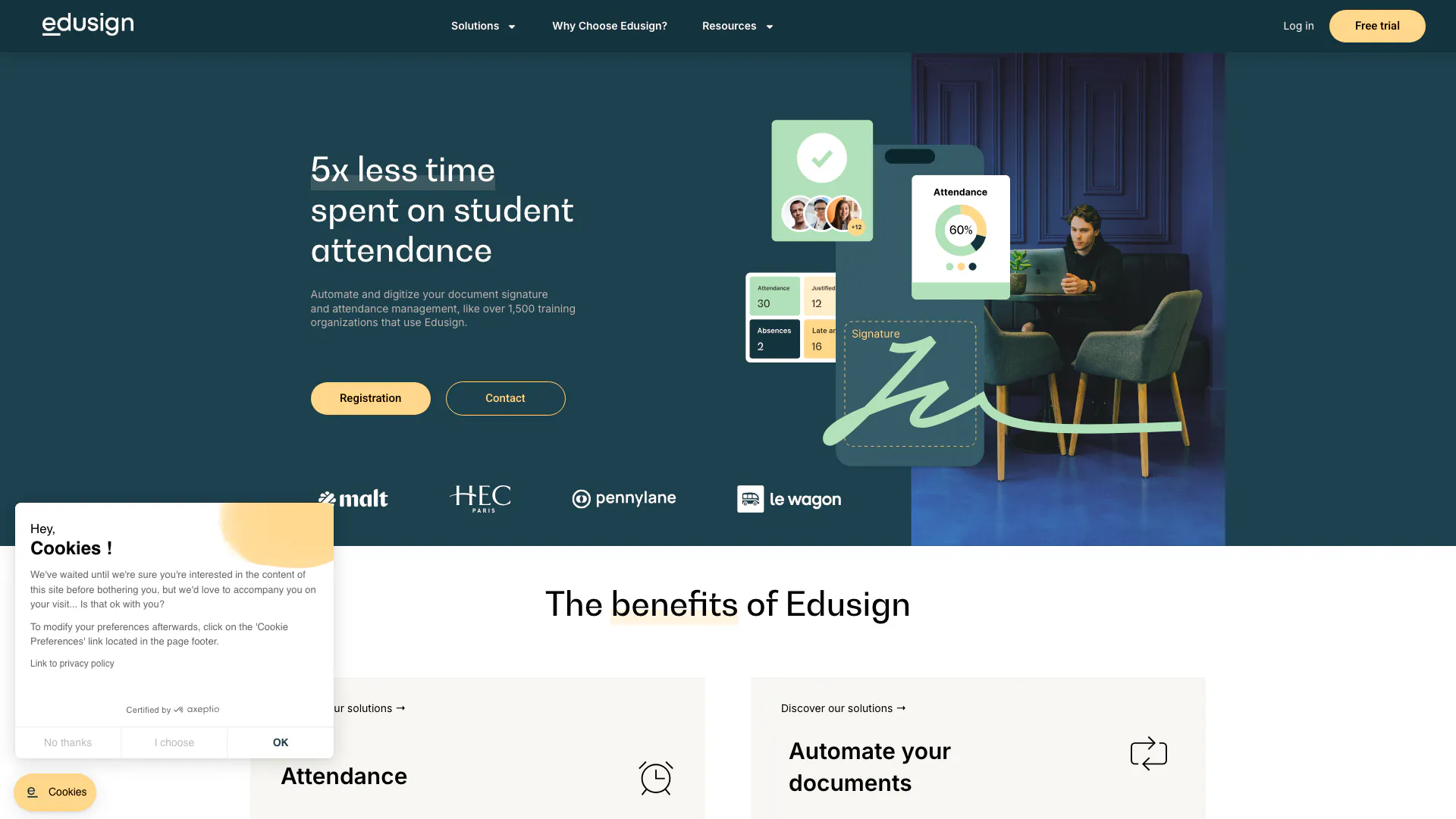 Edusign propose une gamme de solutions pour signaler automatiquement les absences, adaptées à l'apprentissage en présentiel et à distance.