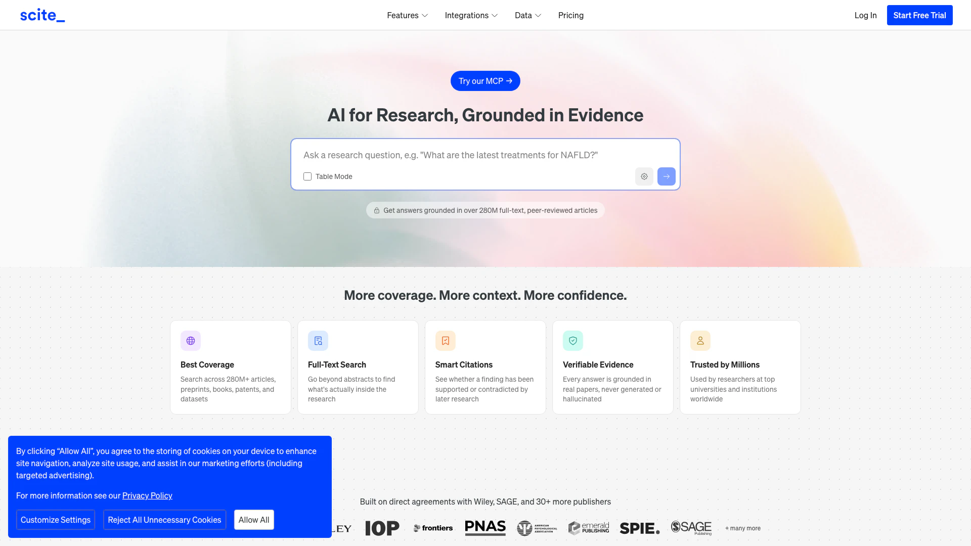 - Confiance des utilisateurs et communauté: Avec plus de 2 millions d'utilisateurs, y compris des chercheurs et des experts de l'industrie, Scite est mondialement reconnu, favorisant une communauté dédiée à l'amélioration de la recherche scientifique.