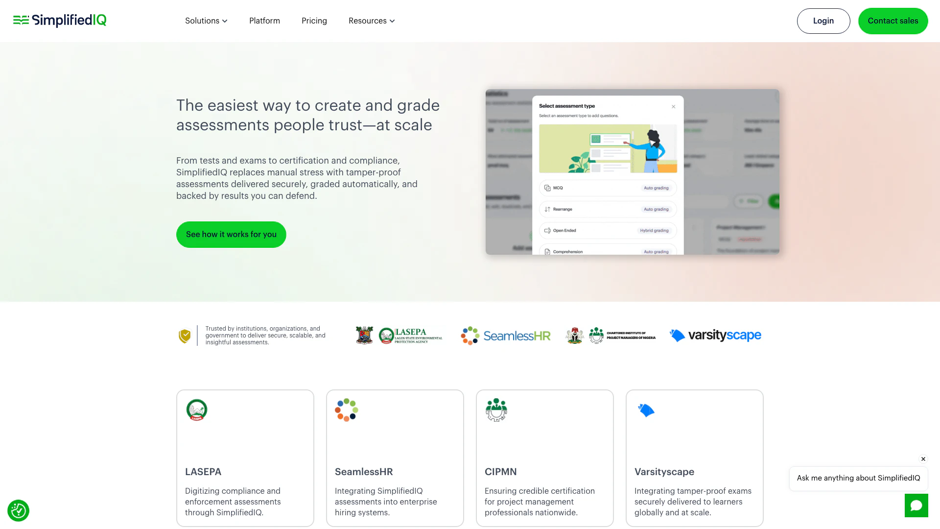 - Système de notation automatisé: SimplifiedIQ propose une notation automatique pour divers types d'évaluations, garantissant la cohérence et réduisant l'effort manuel.