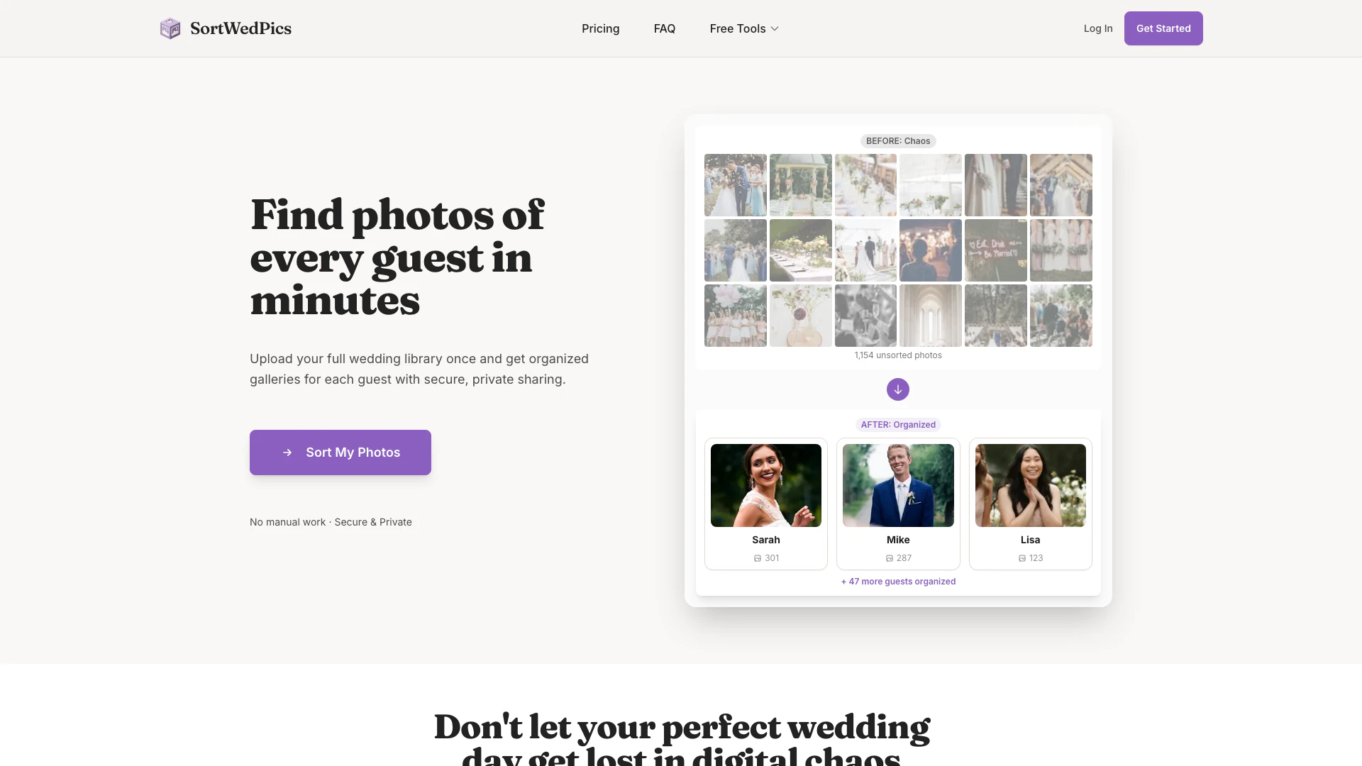 Pour plus de FAQs, visitez ce lien : https://sortwedpics.com/#faq