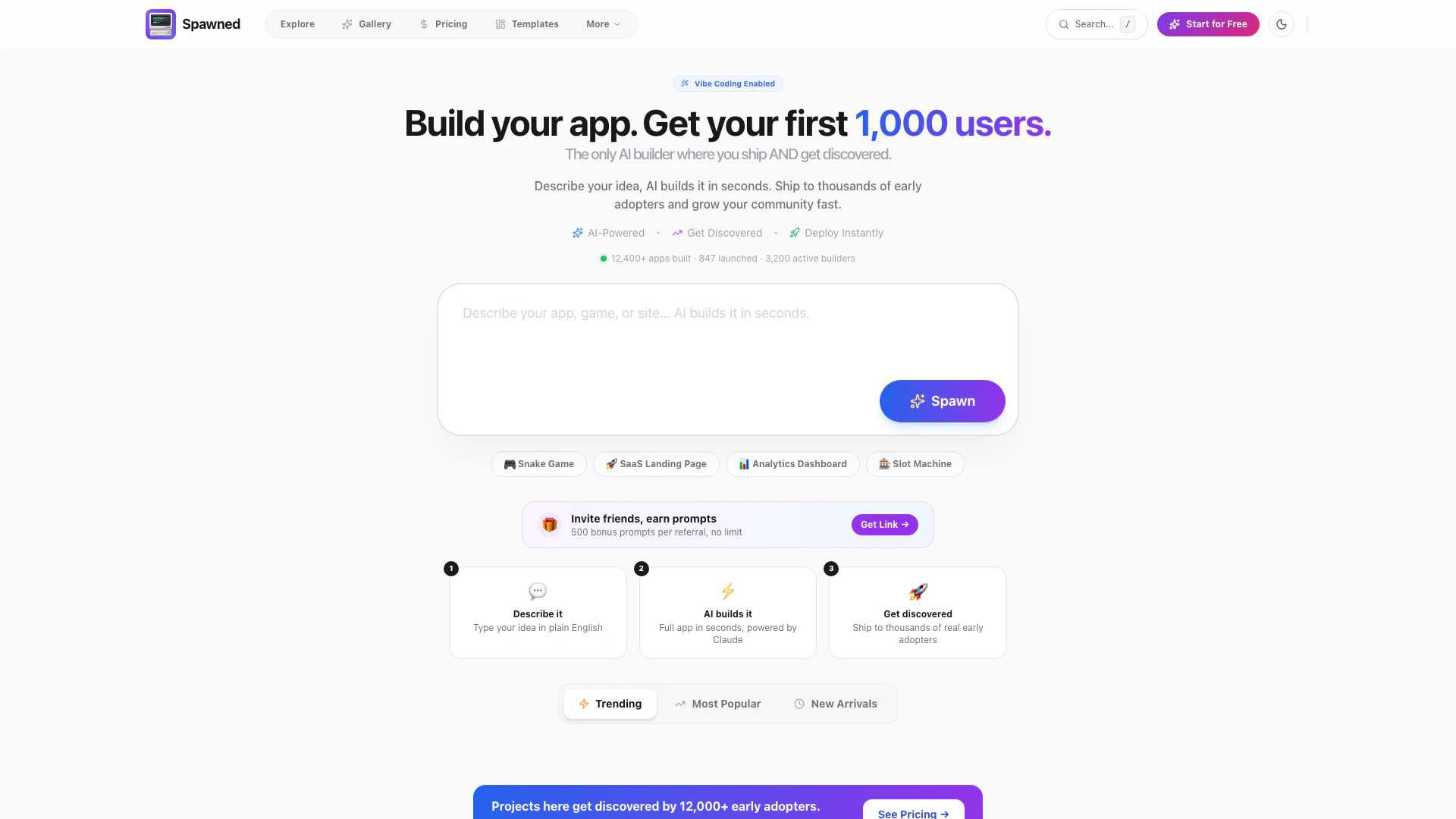 - Développement d'applications rapide: Spawned permet aux utilisateurs de décrire leur idée d'application en anglais simple, et l'IA construit l'application en quelques secondes, accélérant ainsi considérablement le processus de développement.
