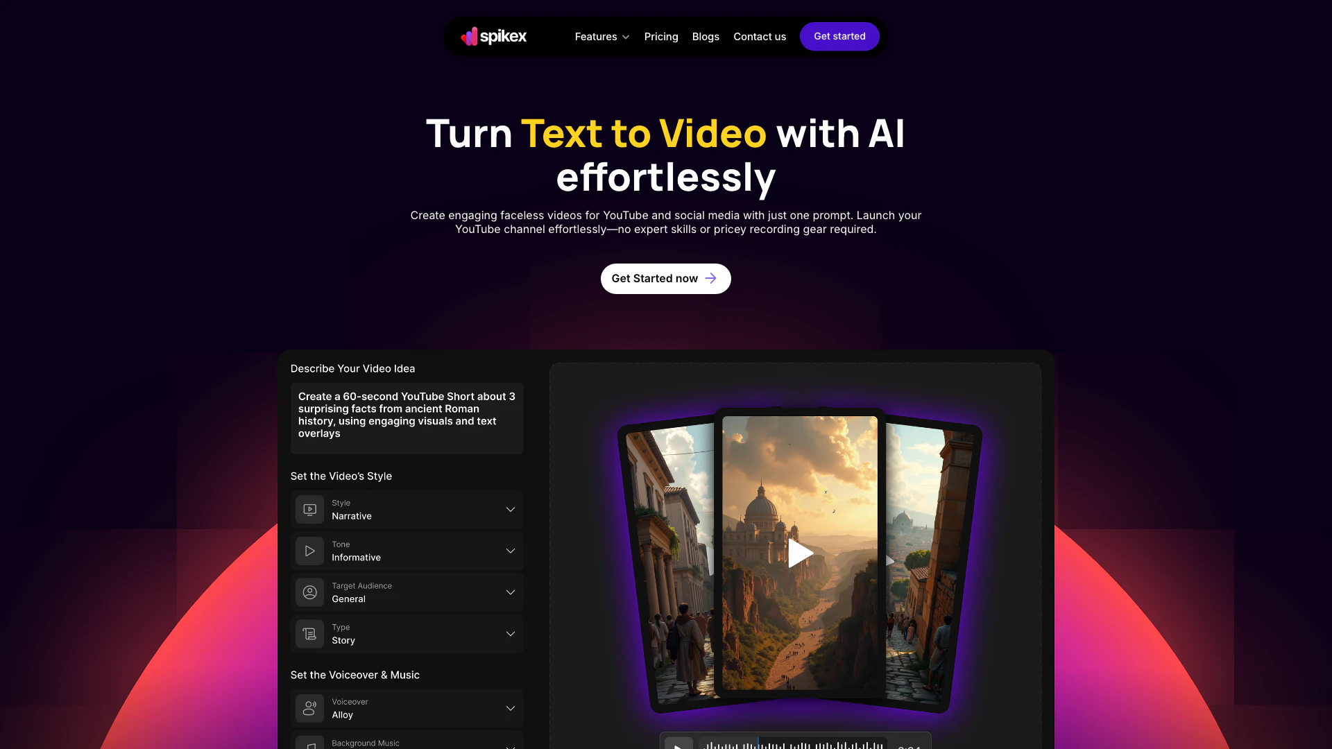 SpikexAI simplifie la création de vidéos avec des outils d'IA pour générer des idées, écrire des scripts et créer des vidéos.