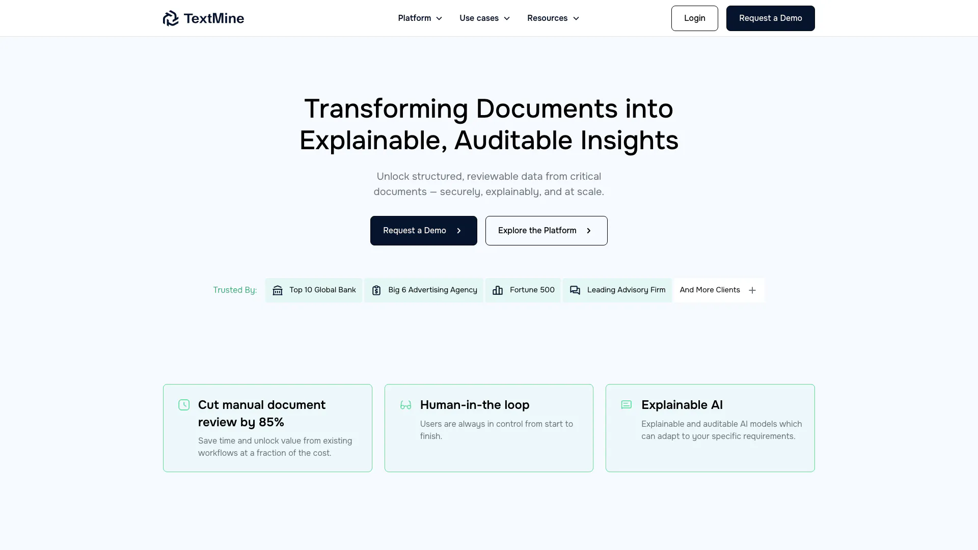 TextMine est une solution d'extraction de données documentaires d'entreprise alimentée par l'IA, conçue spécifiquement pour les équipes d'approvisionnement, KYC (Connaître votre client), de conformité et juridiques. Elle permet aux organisations de transformer des documents critiques en données structurées et examinables de manière sécurisée et à grande échelle. Grâce à ses capacités avancées, TextMine réduit considérablement le processus de révision manuelle, diminuant les temps de révision jusqu'à 85 %. Cet outil est conçu pour fournir une IA explicable, permettant aux utilisateurs de retracer les réponses à leurs sources, garantissant ainsi la transparence et l'auditabilité dans la gestion des données.
