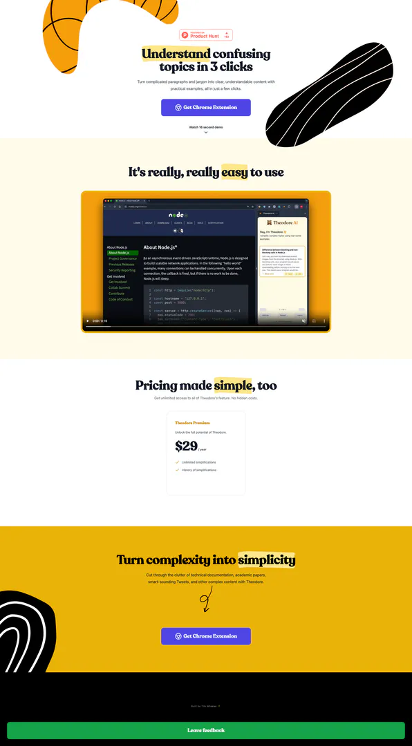 Theodoreai est idéal pour les étudiants, les éducateurs, les chercheurs et les professionnels qui interagissent fréquemment avec des textes complexes tels que des articles académiques, des documents techniques ou des articles chargés de jargon. Il est particulièrement bénéfique pour ceux qui cherchent à comprendre des sujets complexes sans passer trop de temps à déchiffrer un langage difficile.