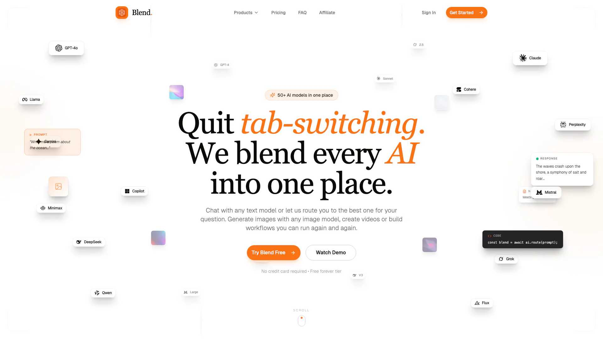 - Accès à plusieurs modèles d'IA: Blend offre un accès à plus de 50 modèles d'IA, permettant aux utilisateurs de choisir le meilleur modèle pour leurs besoins sans passer d'une application à l'autre.