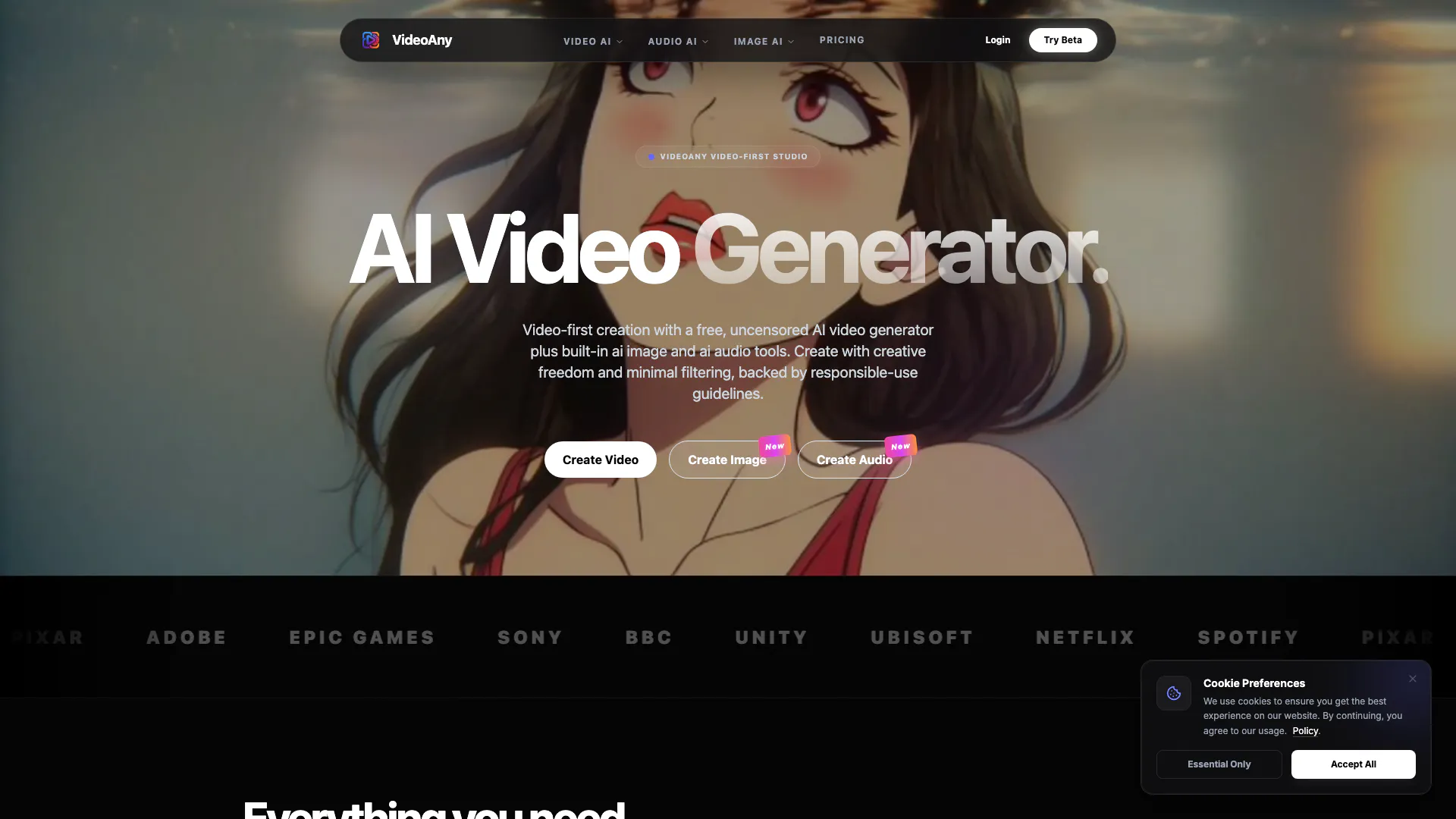 VideoAny est un studio d'IA axé sur la vidéo pour créer des vidéos, des images et de l'audio IA en un seul endroit. Générez des vidéos, des images, de la musique et des avatars avec une interface intuitive.