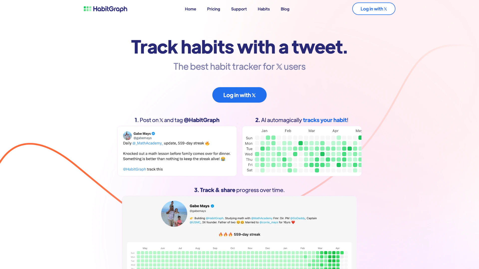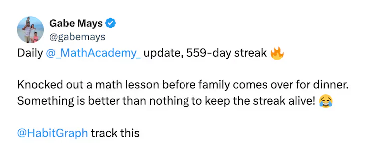 HabitGraph est une application de suivi des habitudes conçue spécifiquement pour les utilisateurs de X/Twitter, leur permettant de suivre leurs habitudes en publiant des tweets.