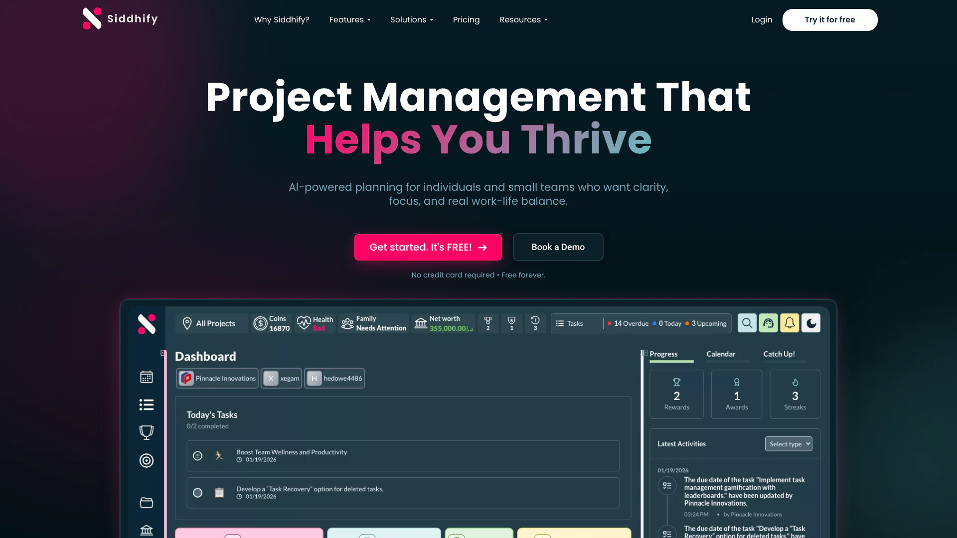 - Équilibrer les objectifs personnels et professionnels : Utilisez Siddhify pour définir des objectifs de bien-être personnel en parallèle des tâches de travail afin d'atteindre un mode de vie équilibré.