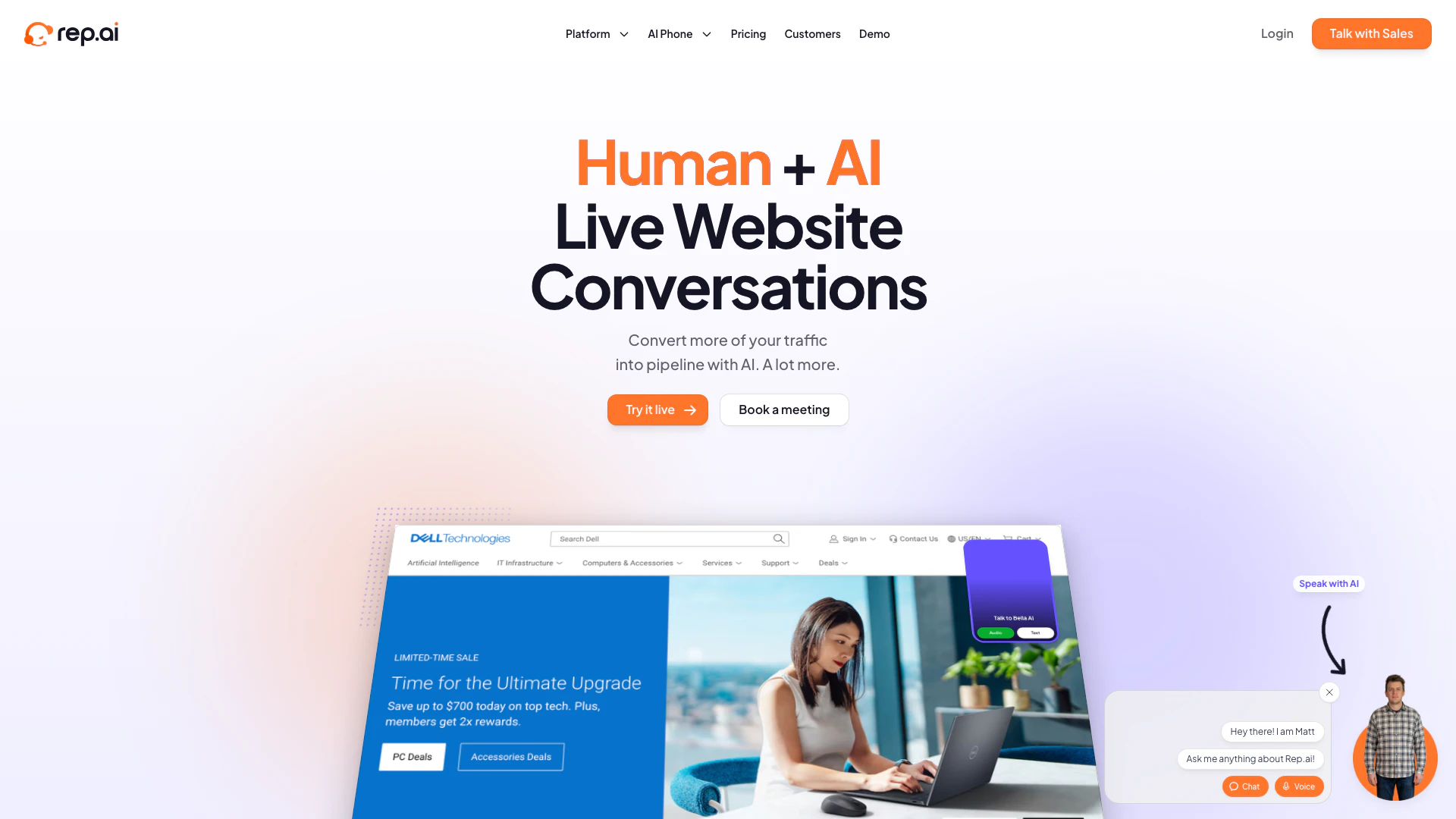 Rep.ai is your AI-powered sales representative that engages visitors through video and voice chat.